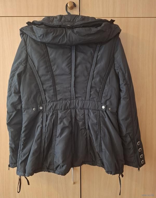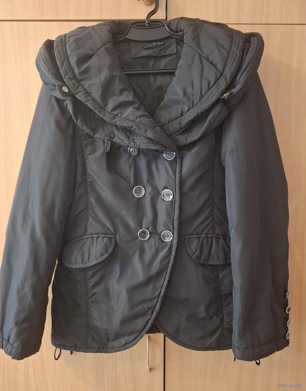 Продаётся итальянская куртка чёрная 46-48-50 размер. С красивым воротником в котором спрятан капюшон. На спине регулировка резинка на кнопках. Внутри, по бокам, регулируется на завязках. Рукав на замочке. Тёплая, лёгкая.