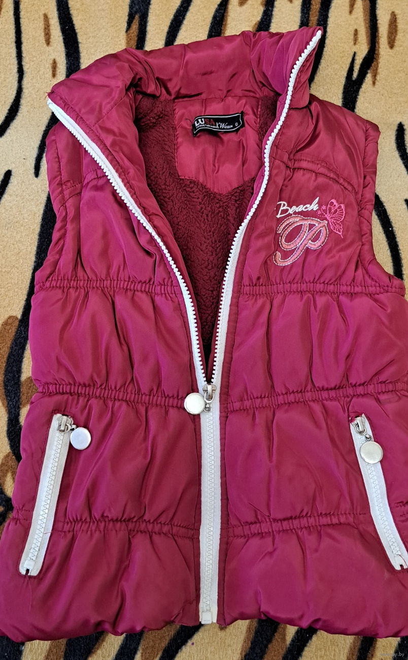 Куртка-жилетка бордо на флисе на девочку, на 4-6г, б.у в отличном состоянии.