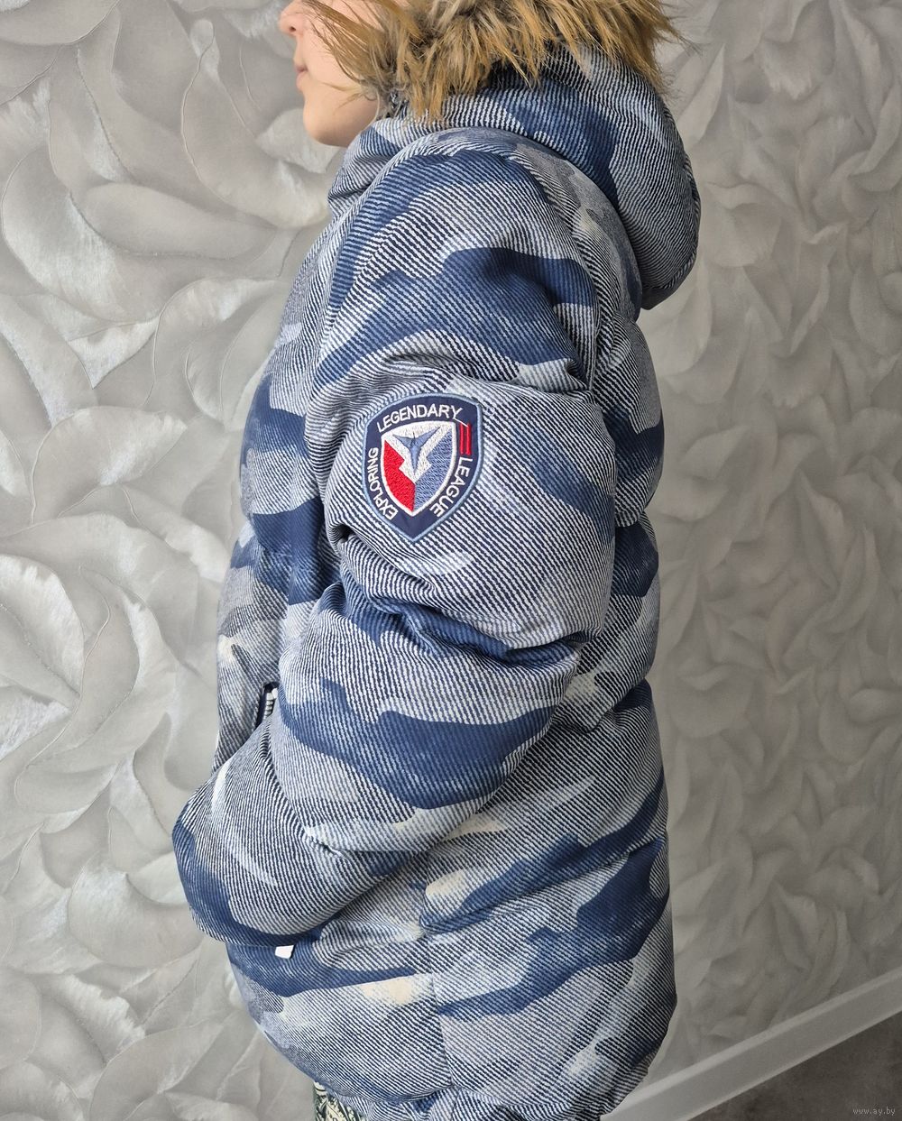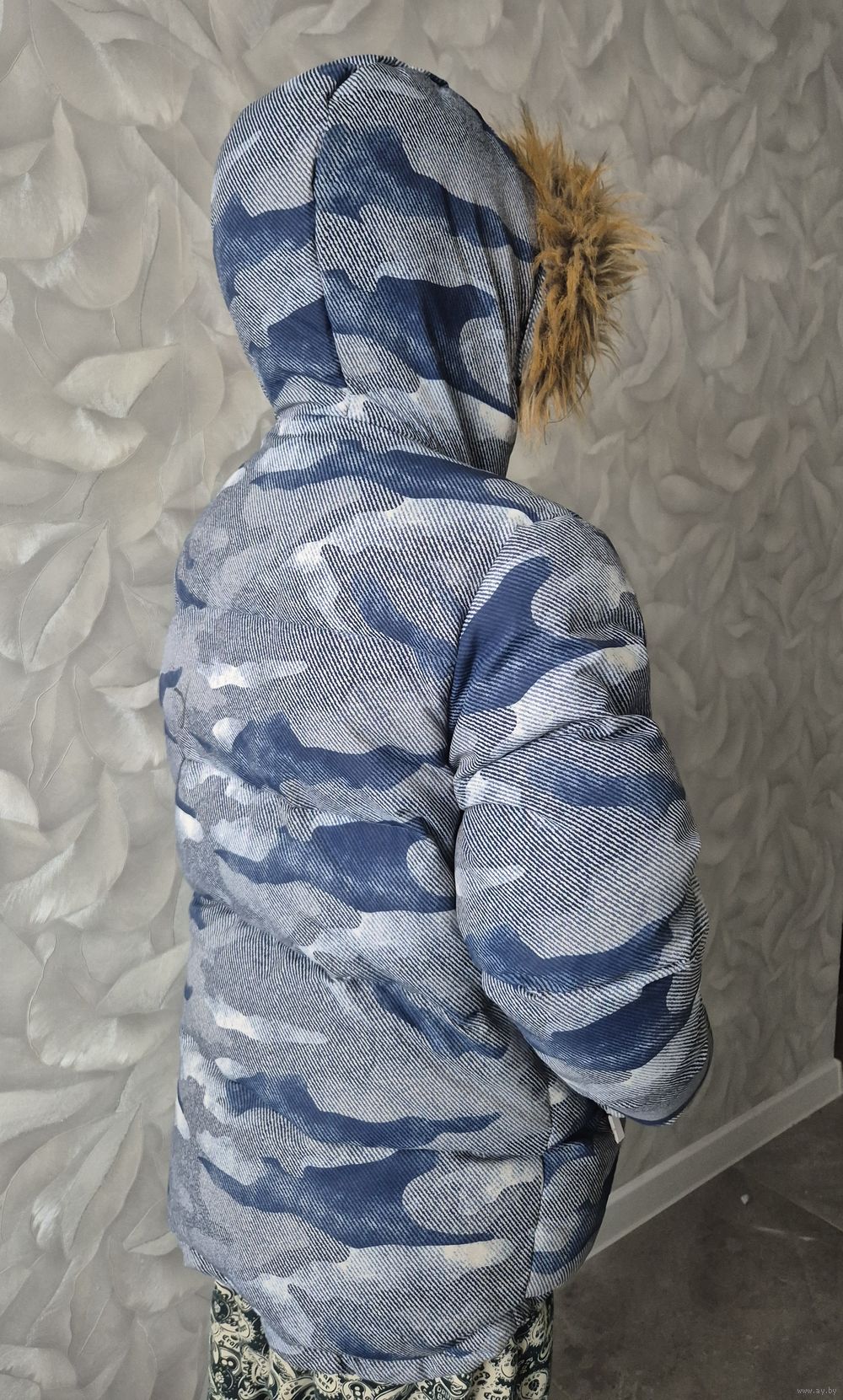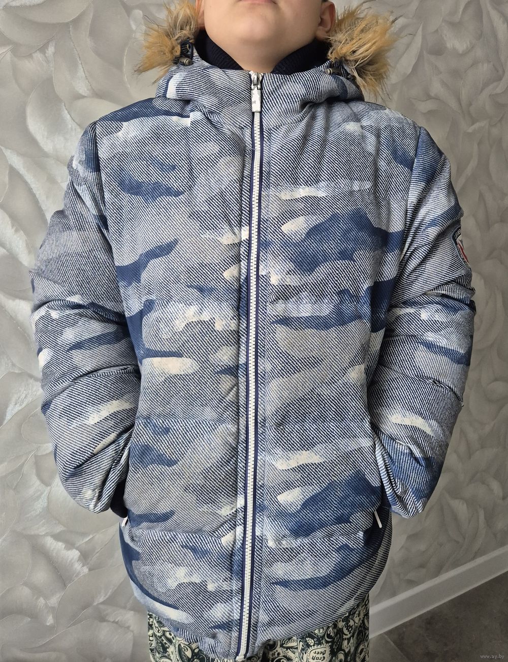 Куртка зимняя на пуху. Белорусского производства. На этикетке рост 152, обхват груди 76 см. Покупали в ЦУМе, г. Минск. Сын носили несколько лет, так как реальный полуобхват груди 54 см, а длина рукава 64 см.