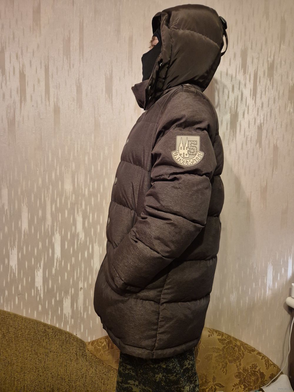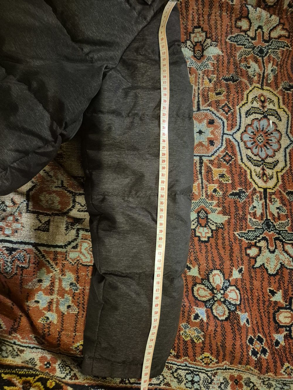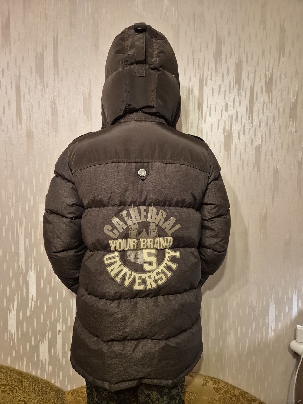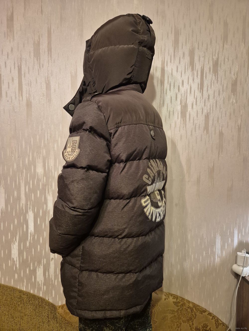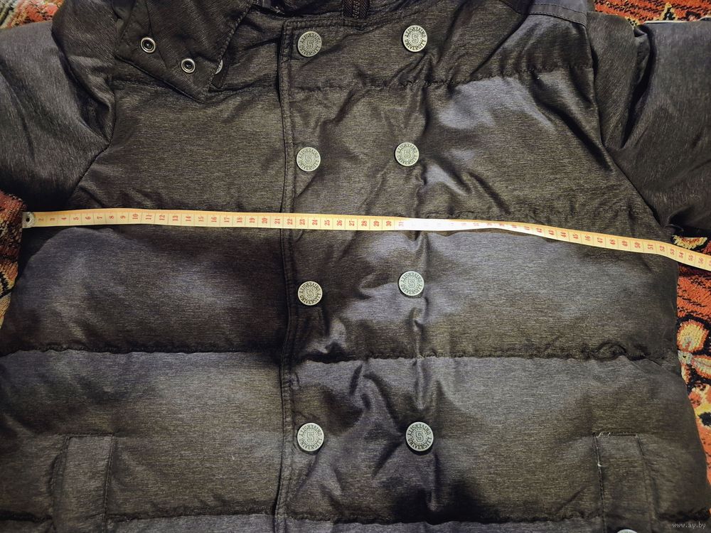 Пуховик в отличном состоянии. Утеплитель: 80% пух гусиный, 20% перо гусиное. Полуобхват груди 55 см. Длина рукава от плеча 60 см. Домна по спинке 70 см. Капюшон сьемный. На фото мальчик ростом 147 см