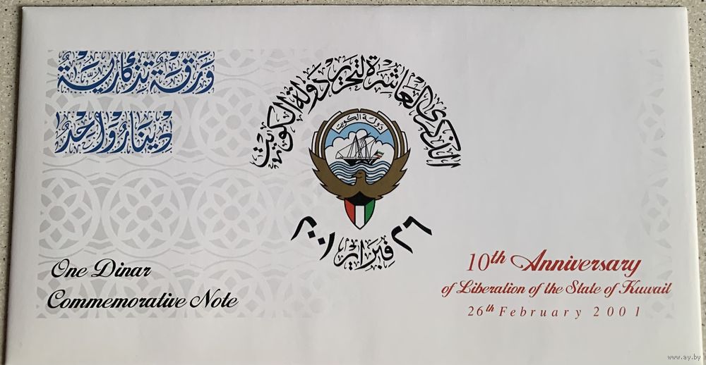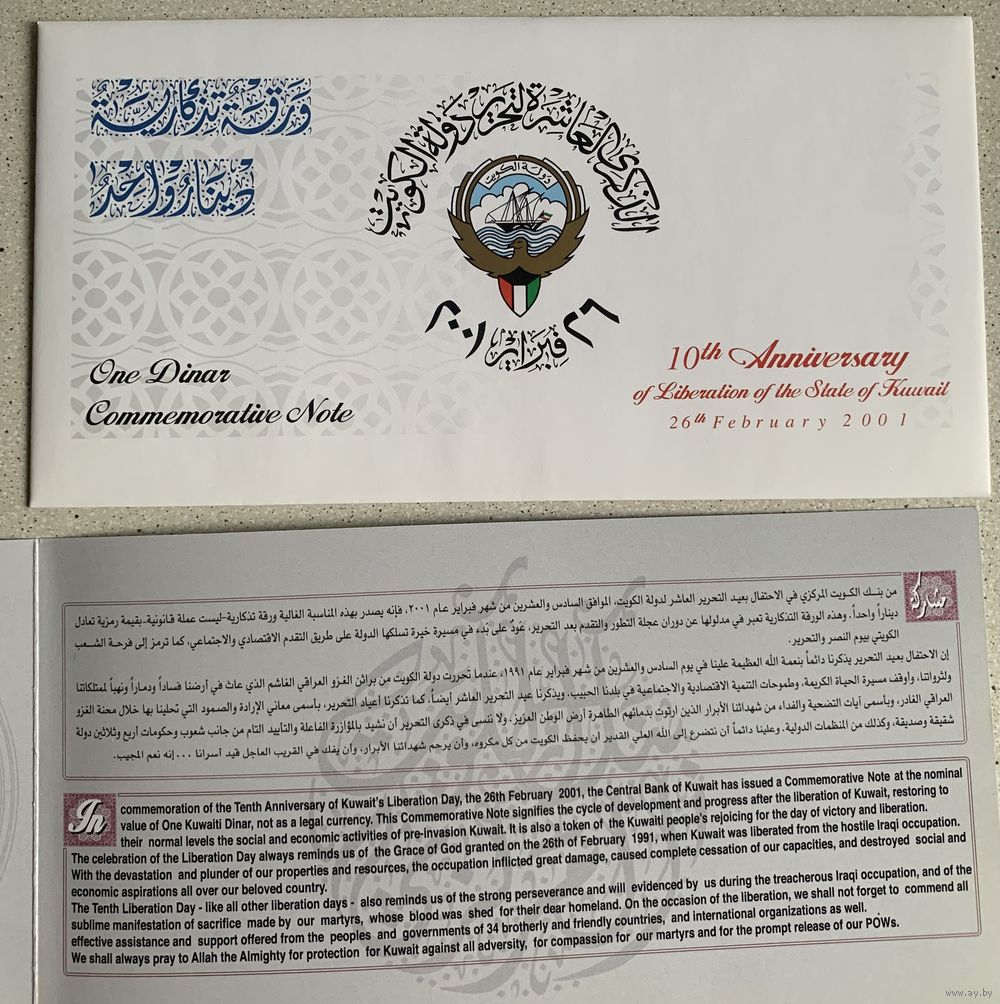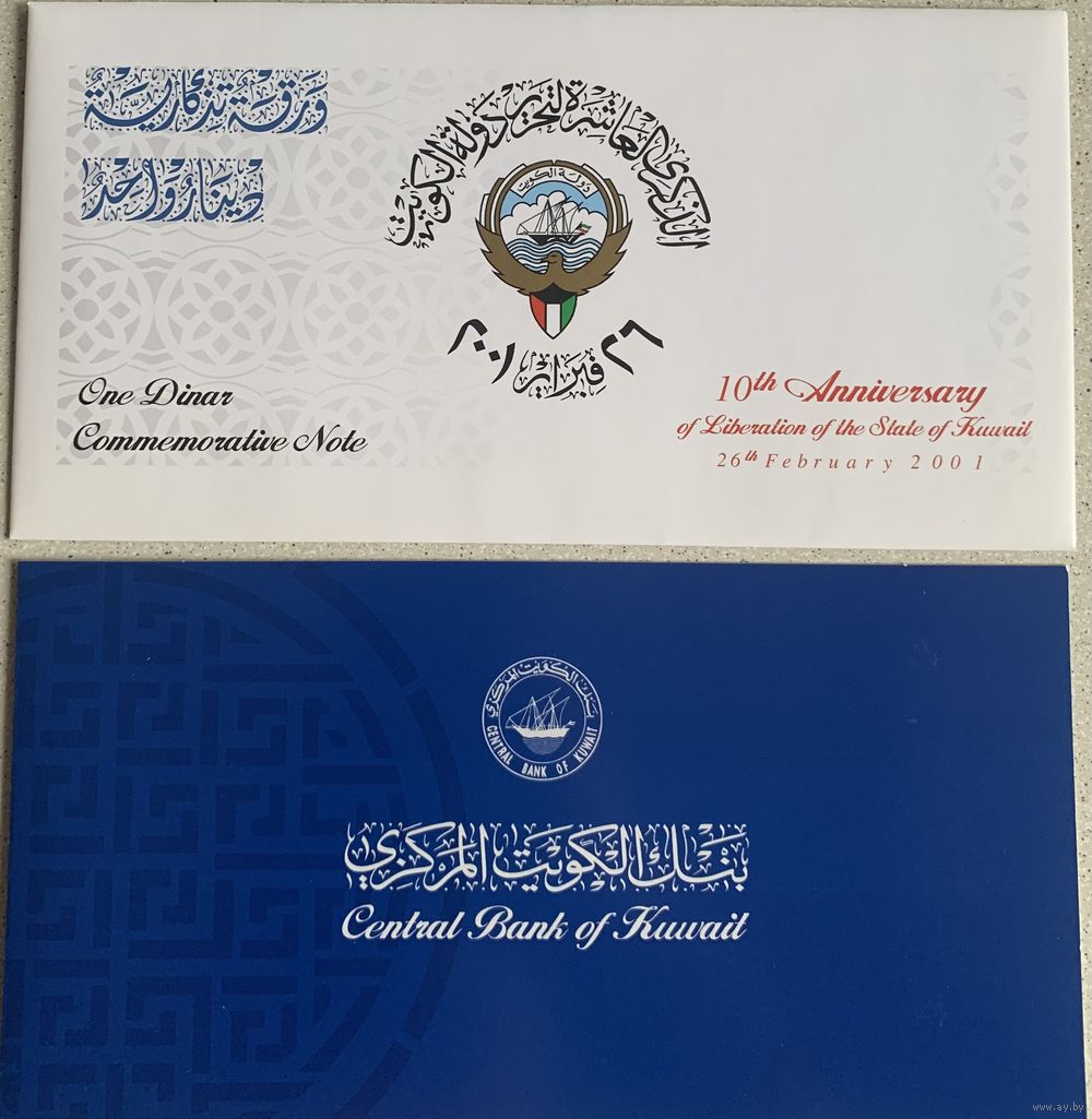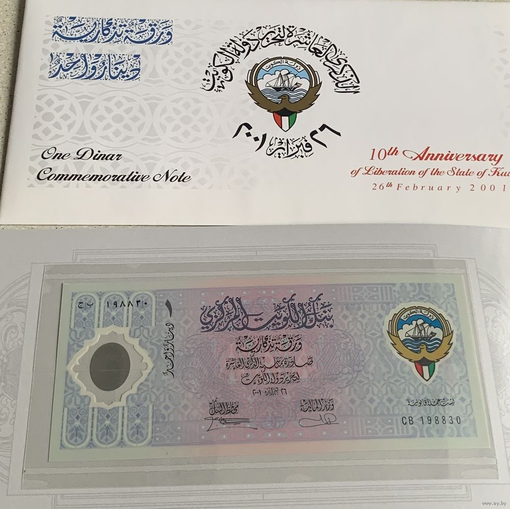 Кувейт 1 динар 2001 г юбилейный полимер в конверте