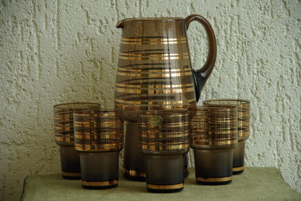 Кувшин + 5 стаканов ( Чехословакия , Богемия ) все целое