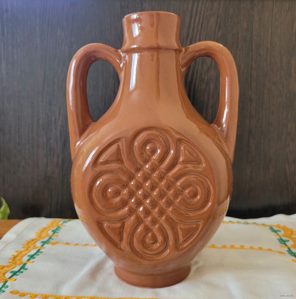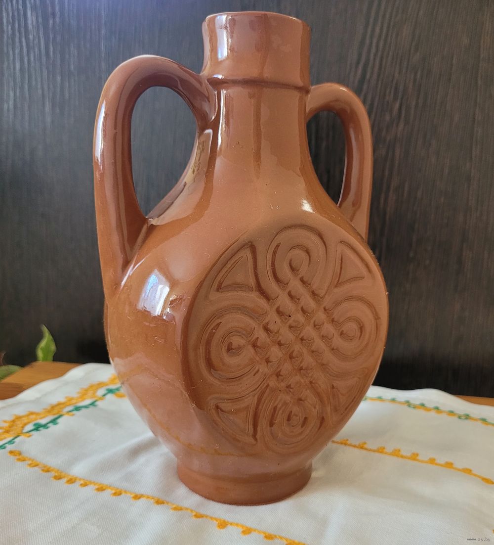 Кувшин/амфора, глазурованная керамика, рельеф с двух сторон. Высота 20,5 см.