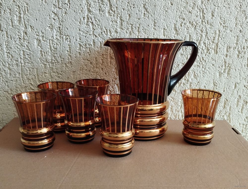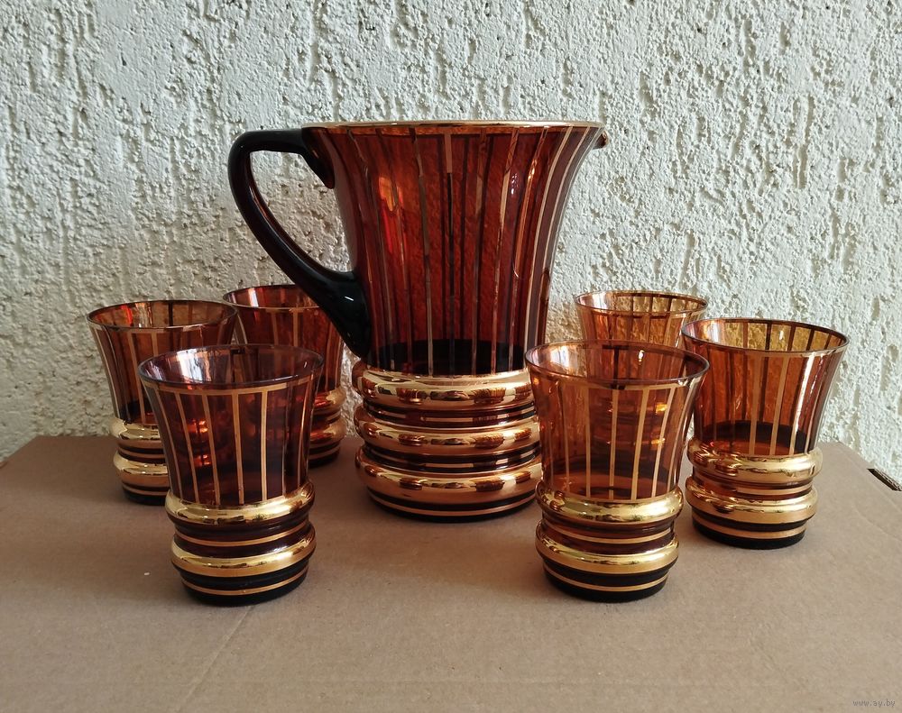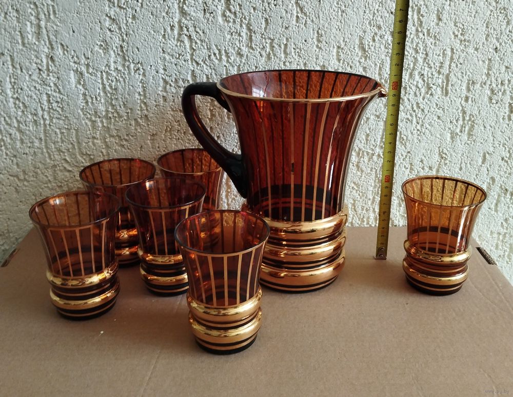 Кувшин Комета (объём 1.5 л) и 6 стаканов (240 мл). Богемия, Чехословакия