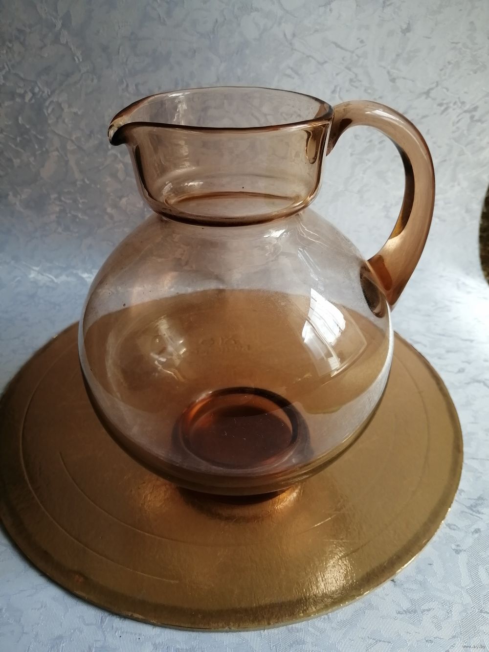 Цвет КАРАМЕЛЬ, стекло ЯНТАРНОЕ, форма прекрасная, обьём 1.5л, состояние прекрасное, для прохладительных напитков, воды, соков и домашнего холодненького кваса.... ОПЛАТА НА КАРТУ, ВЫСЫЛАЮ ЛЮБОЙ ПОЧТОЙ В ДЕНЬ ОПЛАТЫ. НАЛОЖЕННЫМ НЕ ОТПРАВЛЯЮ, ИЗВИНИТЕ... СМОТРИТЕ МОИ ЛОТЫ. СПАСИБО