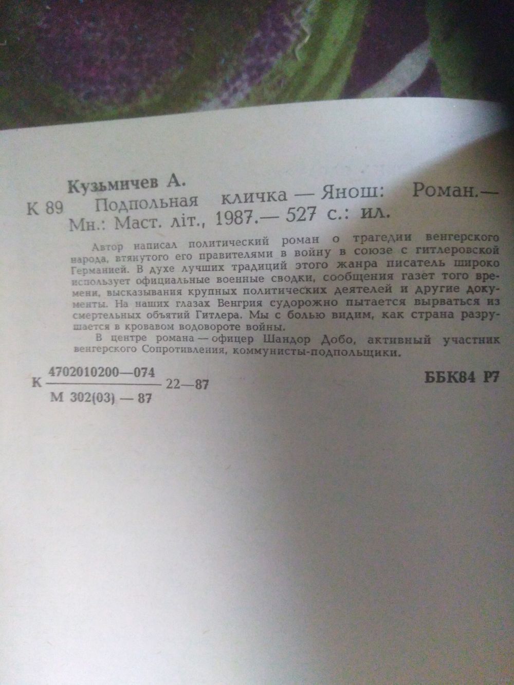 В центре романа – офицер Шандор Добо, активный участник венгерского Сопротивления.