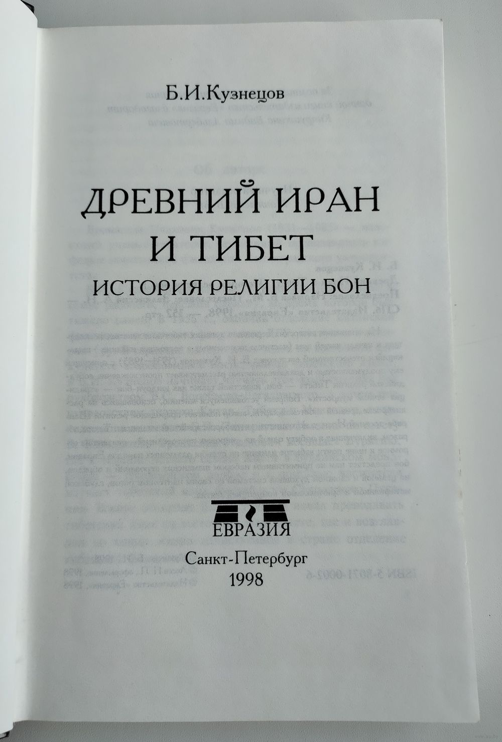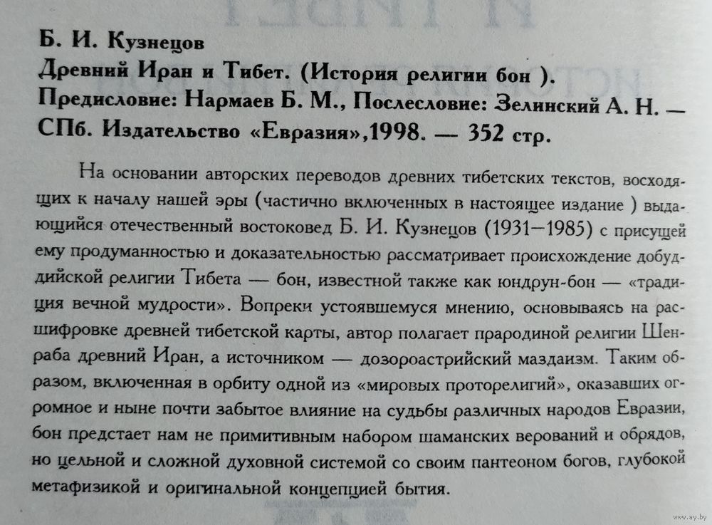 Кузнецов Б.И. Древний Иран и Тибет: История религии бон. Предисловие Нармаева Б.М. Послесловие Зелинского А.Н. СПб.: Евразия, 1998г., 352 с. Твёрдый переплёт, обычный формат.