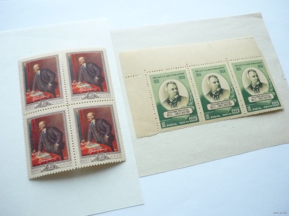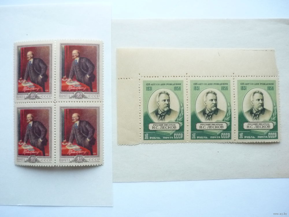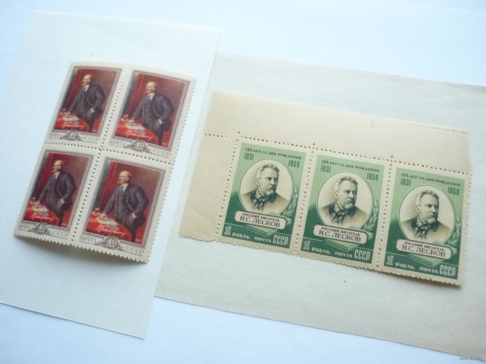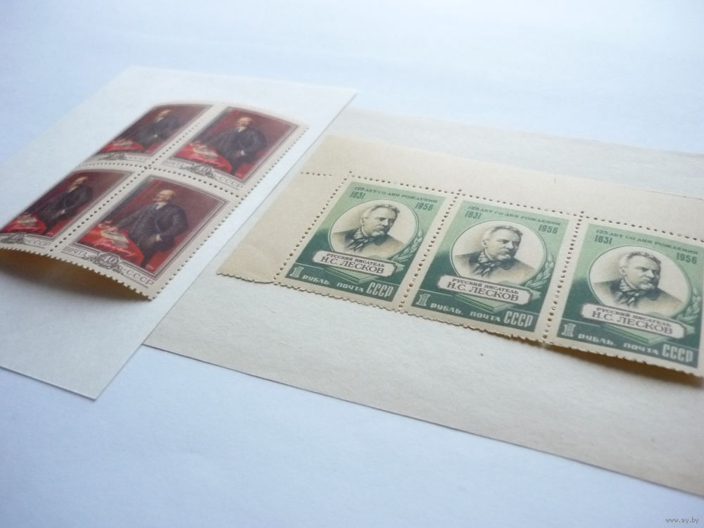 Квартблок и сцепка марок СССР 1956 г.! Чистые (MNH **)! В.Ленин и Н.Лесков. Есть с полями. Состояние. Чистые (MNH **), с клеем. (смотреть на фото). Гарантия продавца! Материал из коллекции. Нечастые в данном исполнении. Фото сделаны без фотовспышки при дневном свете. Смотрите другие мои лоты. Есть нечастый интересный материал.