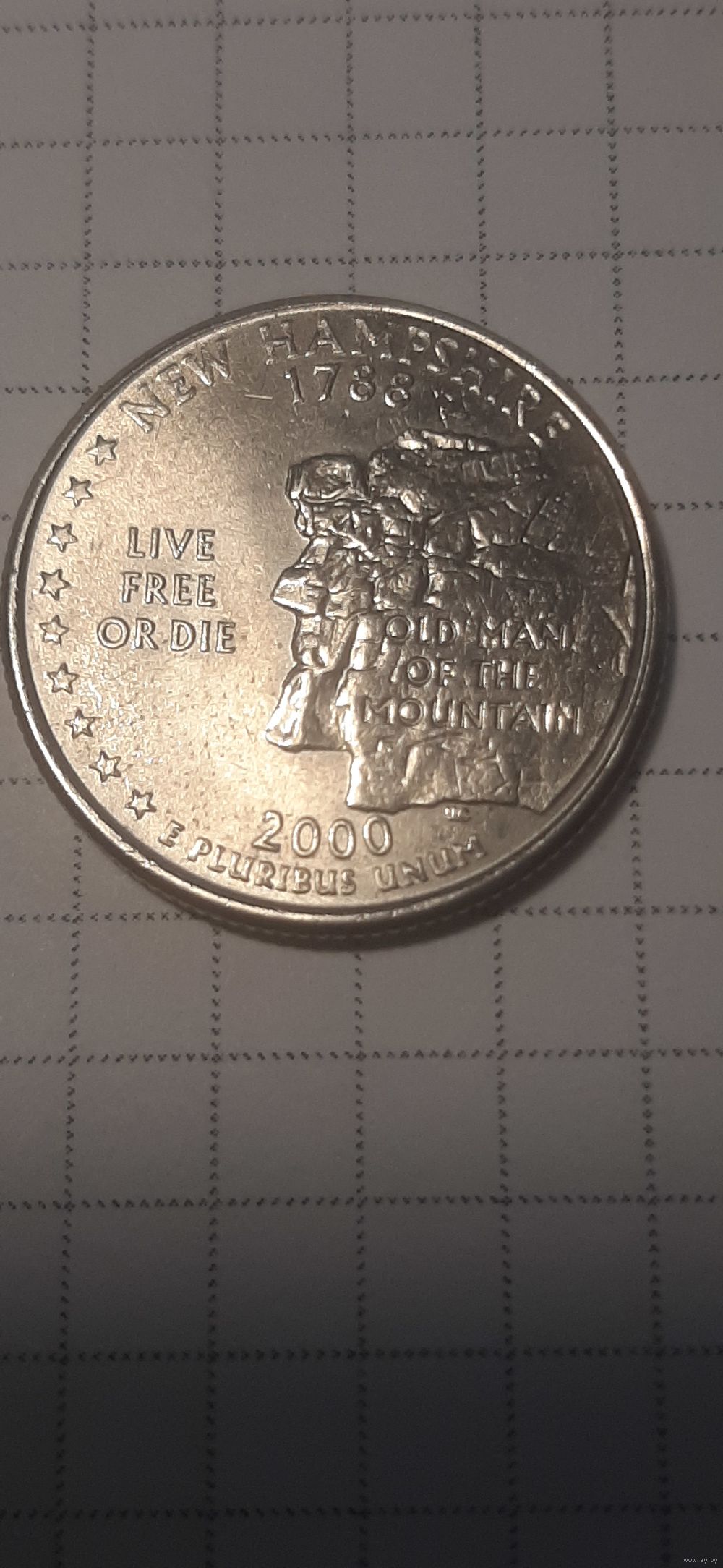Квотер 25 центов памятный сша 2000 год хемпшир
