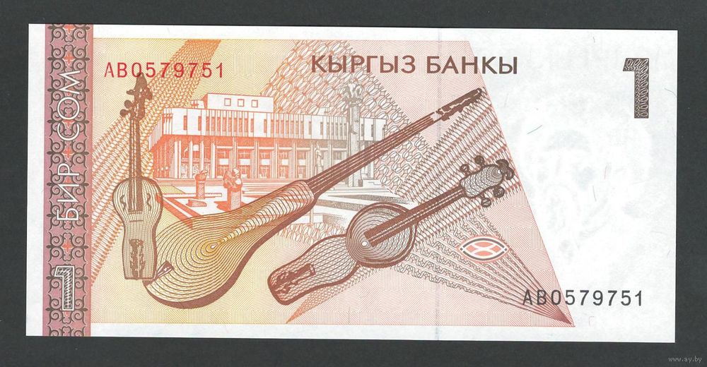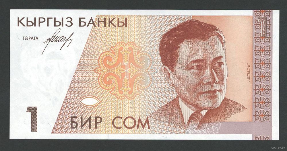 Кыргызстан 1 сом 1994 года. Серия AВ. Тип Р-7. Состояние UNC!