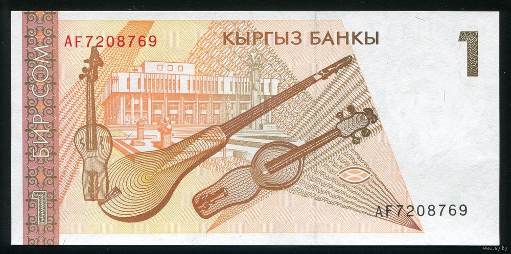 Кыргызстан (Киргизия) 1 сом 1994 г. P7. Серия AF. UNC