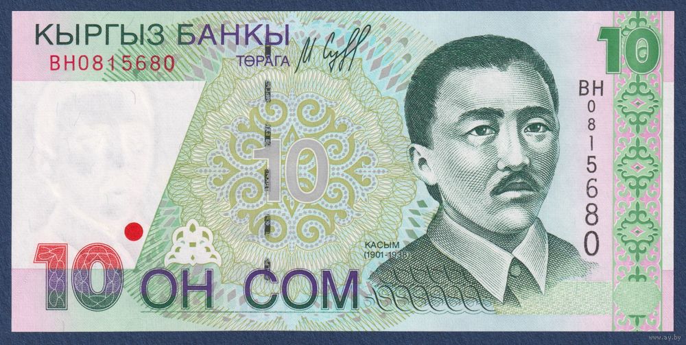 Кыргызстан (Киргизия), 10 сом 1997 г, P-14 (ВН, языковед Касым Тыныстанов), UNC