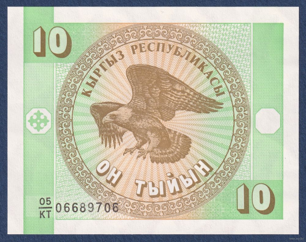 Кыргызстан (Киргизия), 10 тыйын 1993 г., P-2b (KT, орёл, в/з узор), UNC