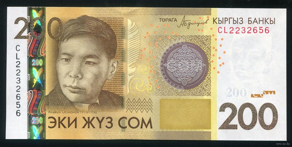 Кыргызстан (Киргизия) 200 сом 2016 г. P27b. Серия CL. UNC