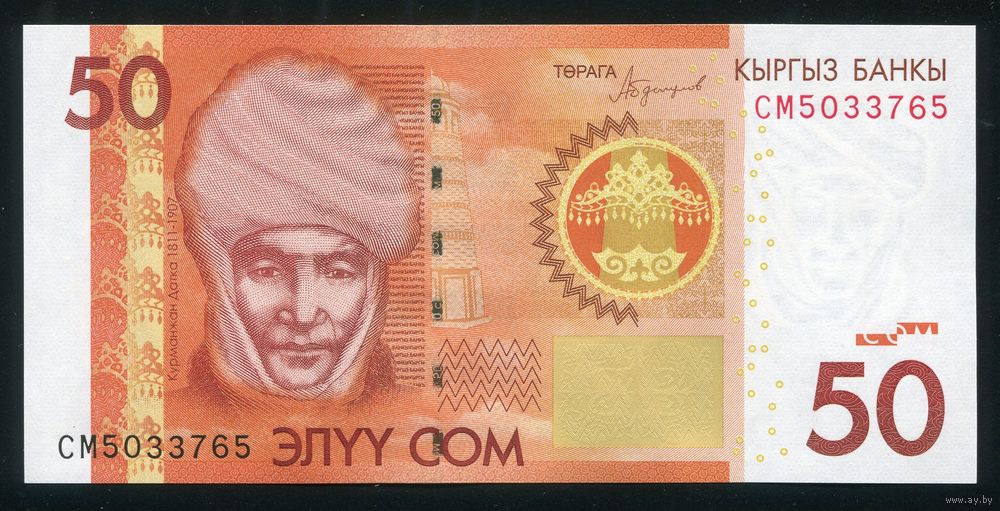 Кыргызстан (Киргизия) 50 сом 2016 г. P25b. Серия CM. UNC