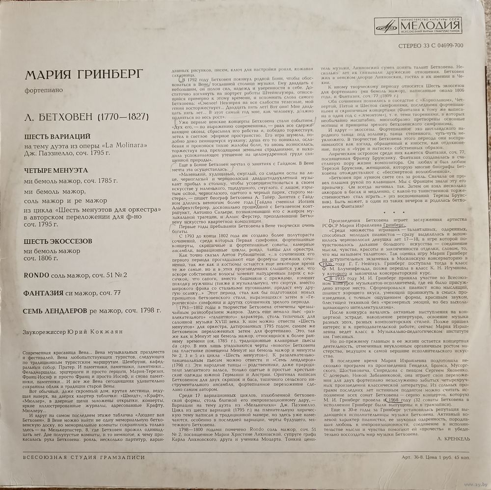 Л. Бетховен - М. Гринберг – Шесть Вариаций / Четыре Менуэта / Шесть Экоссезов / Рондо / Фантазия / Семь Лендлеров