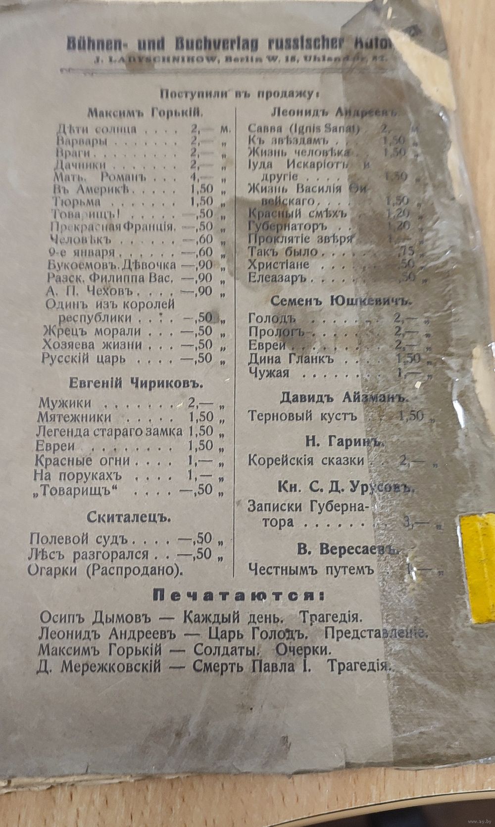 Берлин, 1908 год. Издательство "Buhnen- und Buchverlag russischer Autoren, J. Ladyschnikow".