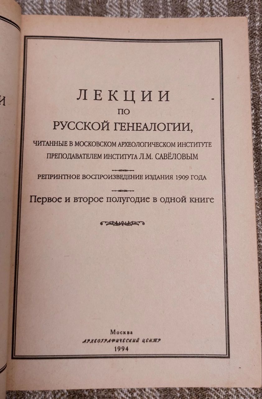Л. М. Савелов Лекции по генеологии Репринт 1909 года