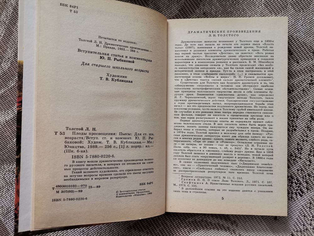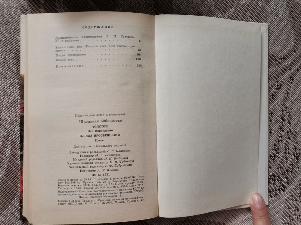 Л.Н.Толстой "Плоды просвещения" 1989 Юнацтва