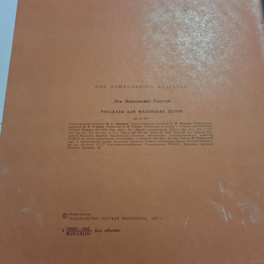 Л.Толстой Рассказы для маленьких детей. Москва 1981г.