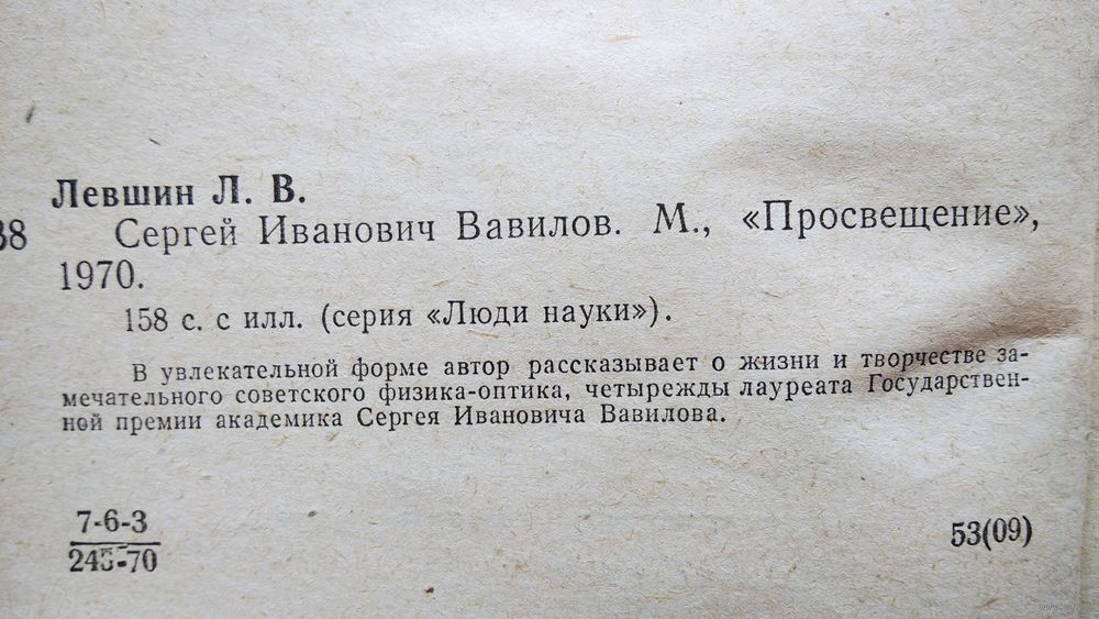 Сергей Иванович Вавилов (1891—1951) — советский физик, основатель научной школы физической оптики в СССР, академик (1932) и президент АН СССР (с 1945 года), общественный деятель и популяризатор науки. Лауреат четырех Сталинских премий (1943, 1946, 1951, 1952 — посмертно). Младший брат Н. И. Вавилова, советского ученого-генетика.