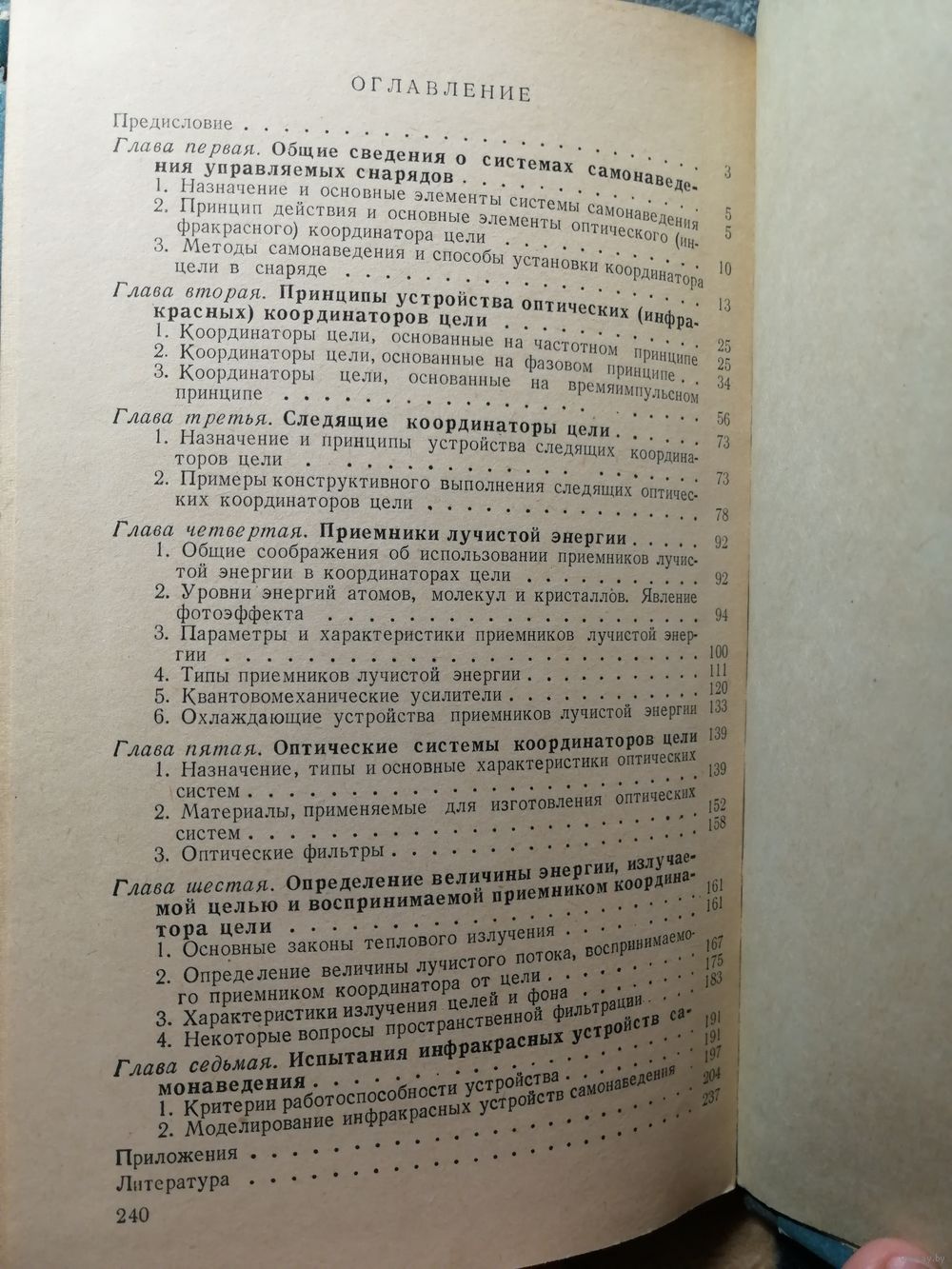 В книге систематизирован зарубежный опыт разработки ИК устройств самонаведения (тепловых головок) управляемых снарядов по материалам, опубликованным в иностранной периодической печати. Изложены принципы действия, устройство и характеристики инфракрасных координаторов, использующих различные методы определения координат целей (фазовый, импульсный, частотный и др.). Дано описание следящих координаторов современных ракет (``Сайдуиндер``, ``Файрстрик`` и др.). Показаны методы расчета дальности действия этих координаторов и методика их испытаний. Значительное место уделено основным элементам координаторов - приемникам лучистой энергии и оптике. Книга предназначена для широкого круга читателей, имеющих инженерно-техническую подготовку, а также может служить пособием для студентов старших курсов технических вузов.