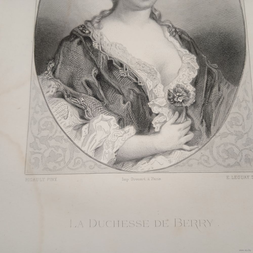 La Duchesse de Berry. Гравюра середина 19века Франция Париж Оригинал 27х18см. РАСПРОДАЖА КОЛЛЕКЦИИ.