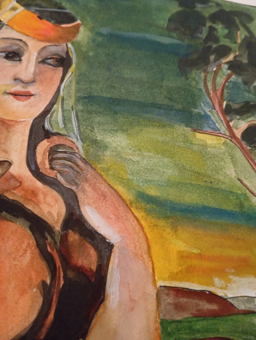 Бумага, туш, перо, гуашь 29 х 40 см. Авторская подпись отсутствует. Экспертиза подлинности не проводилась. Состояние на фото.
