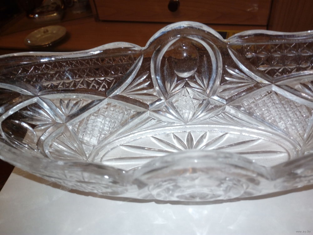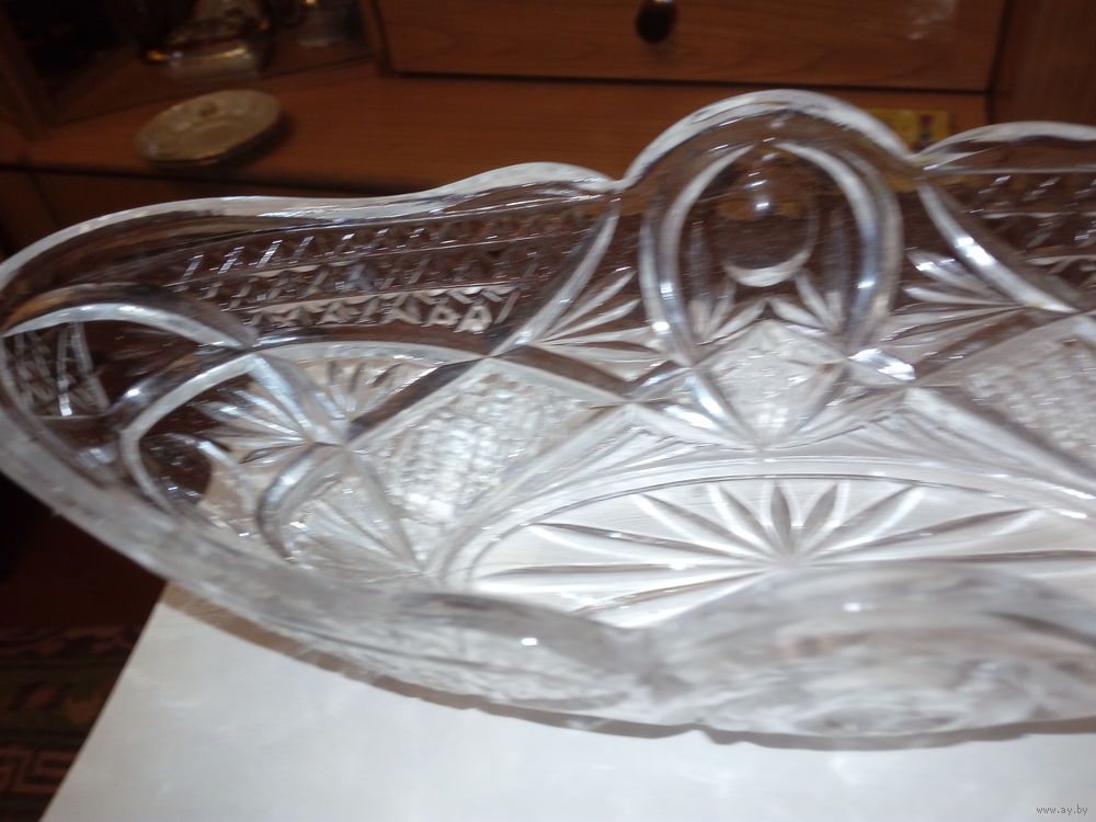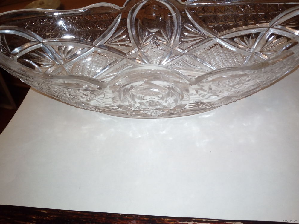 ваза хрутальная, форма "Ладья" без сколов и трещин.импортный хрусталь дл 29см. шир 14см. невозмжен возврат товара после покупки.