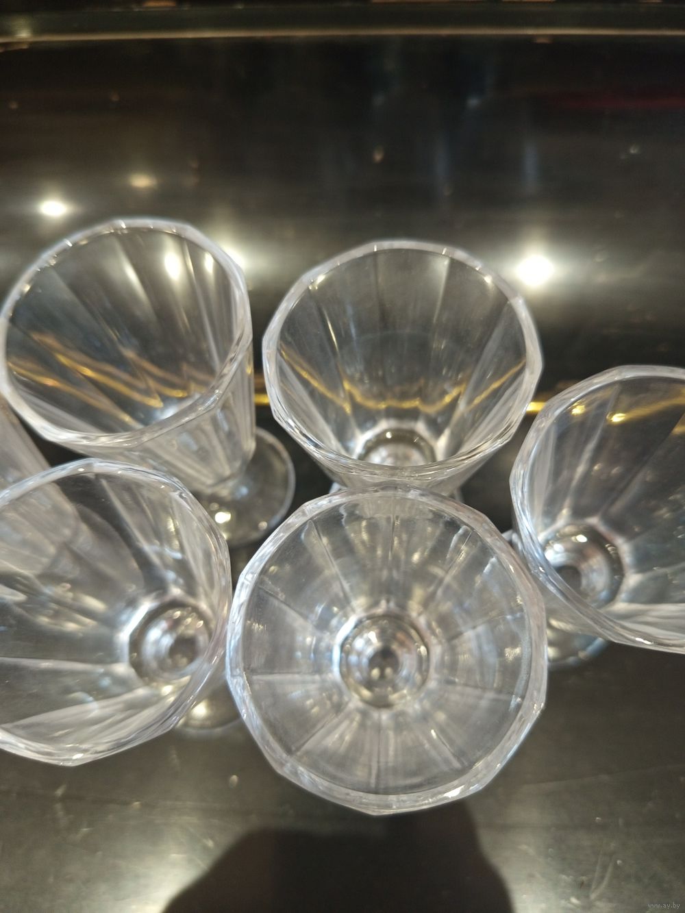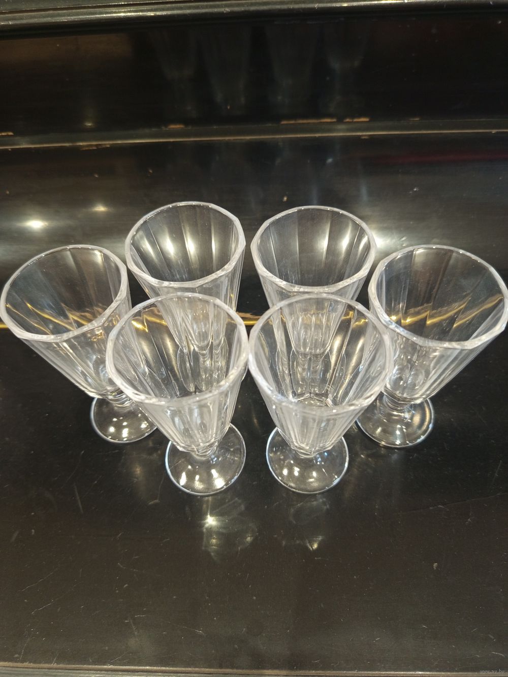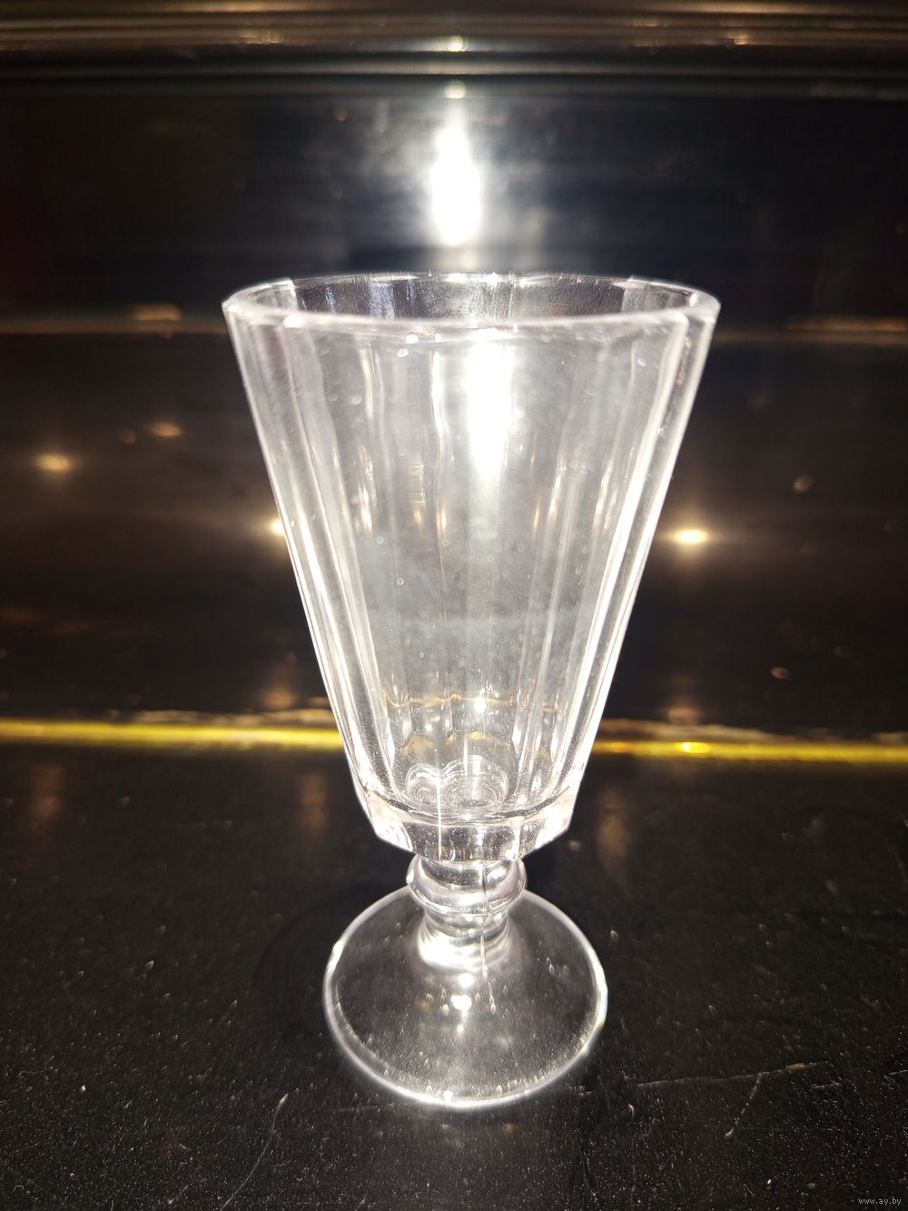Лафитник рюмка граненая..Объем 50 мл.Высота 10 см .В хорошем состоянии.Без сколов и повреждений.Надписей или клейма не нашел.Цена указана за 6 штук.Можно забрать в Минске или почта.