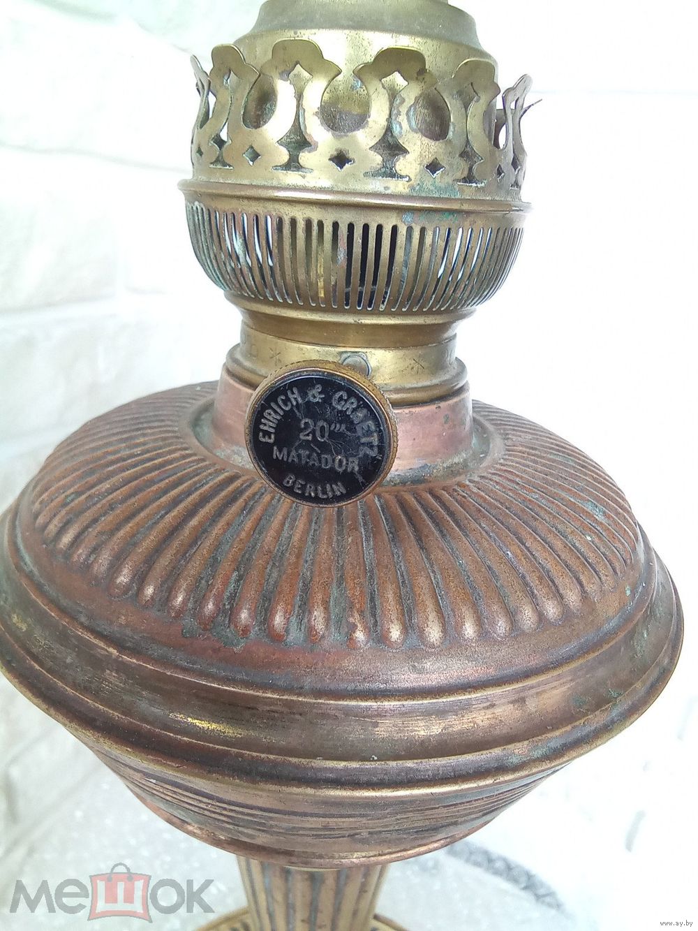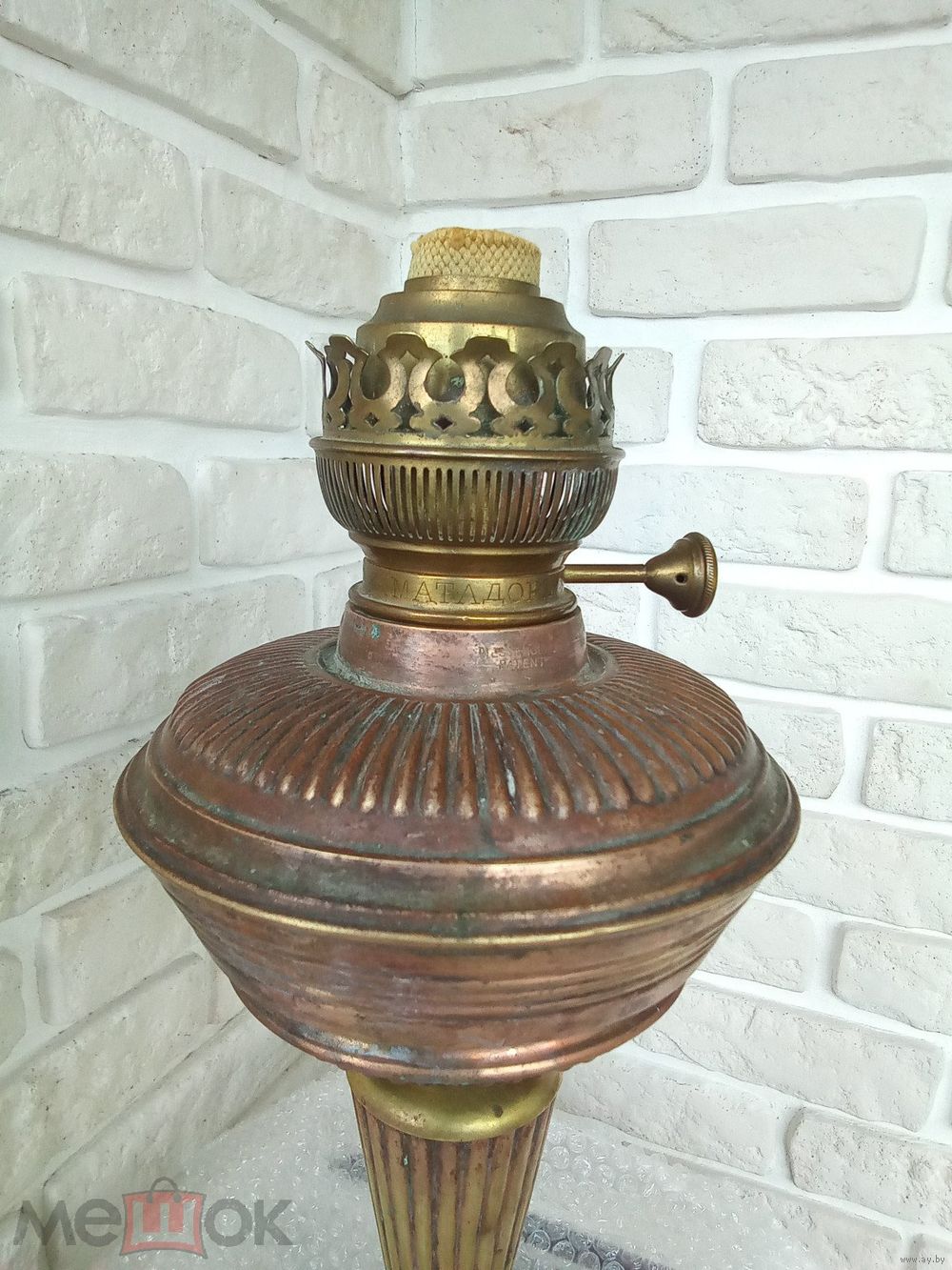 Здравствуйте, в продаже лампа керосиновая МАТАДОРЪ, до 17го. Высота лампы 41см, диаметр основания- 19,5 см, размер под стекло примерно 60 мм. Стекла -нет.