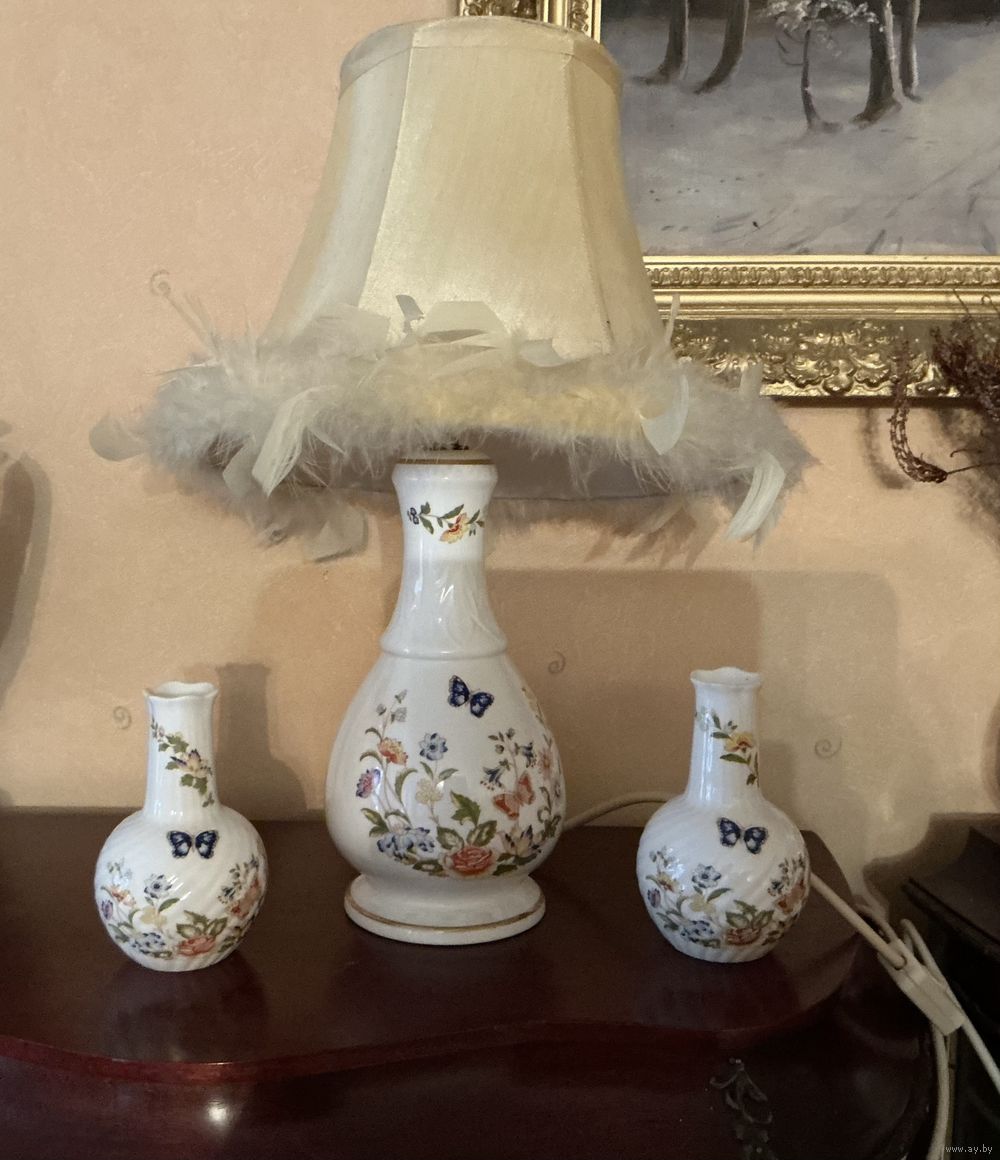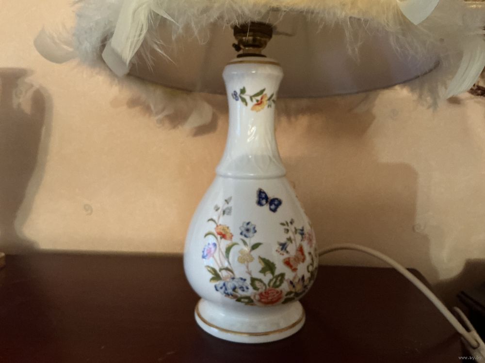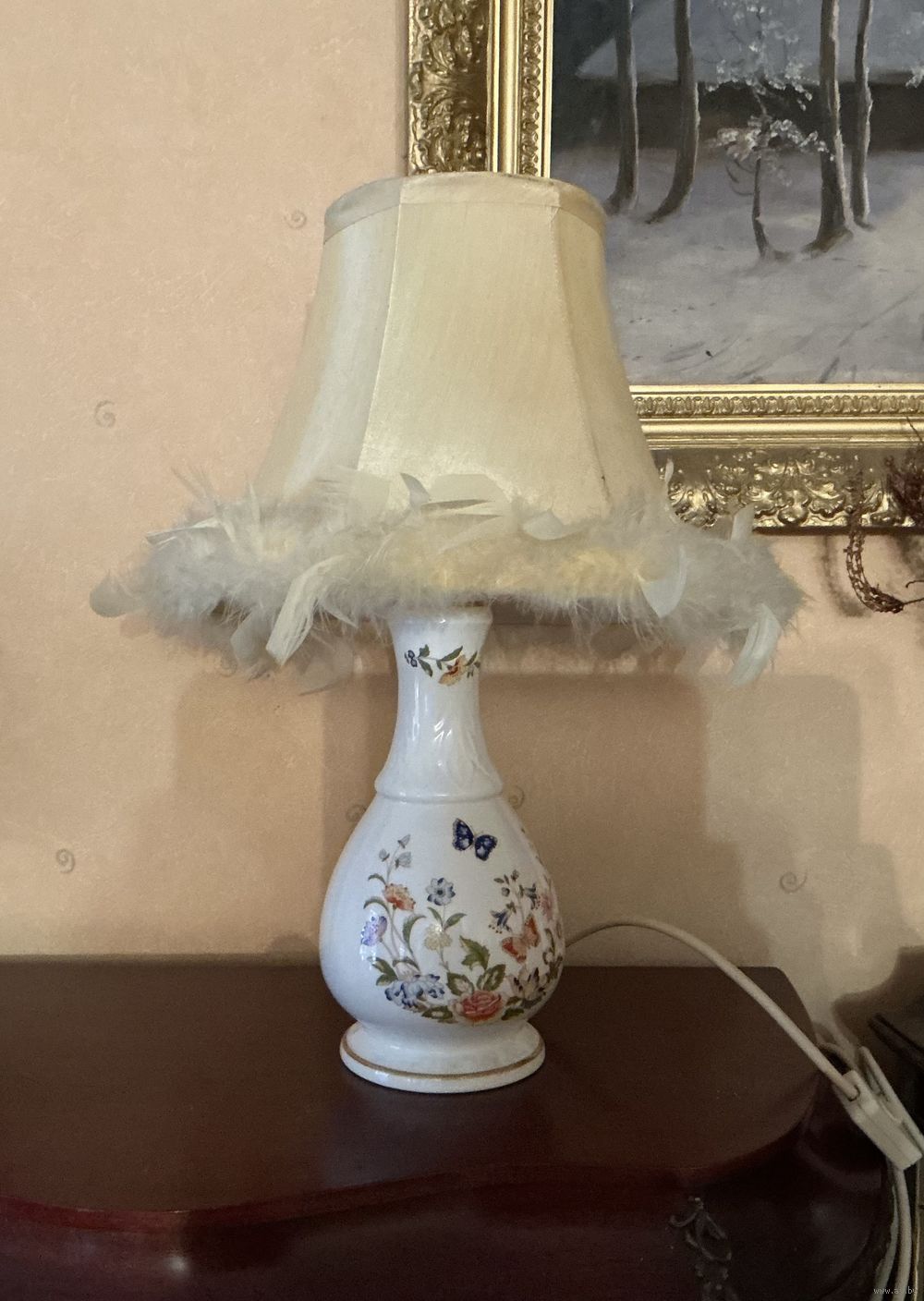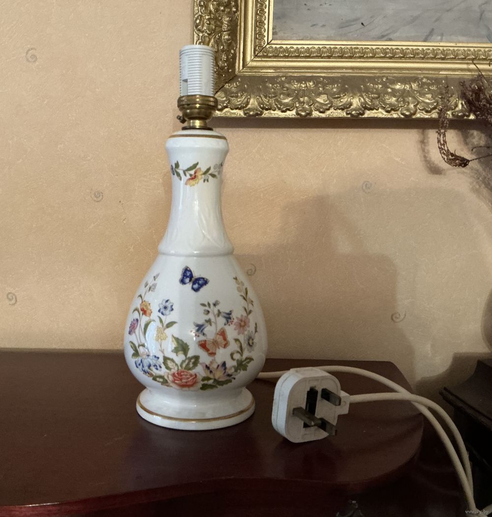 Красивая фарфоровая лампа , высота с абажуром 40 см , известная марка и серия фарфора, есть другие предметы этой серии - вазы и др , малый цоколь, вилка английская , надо поменять , работает