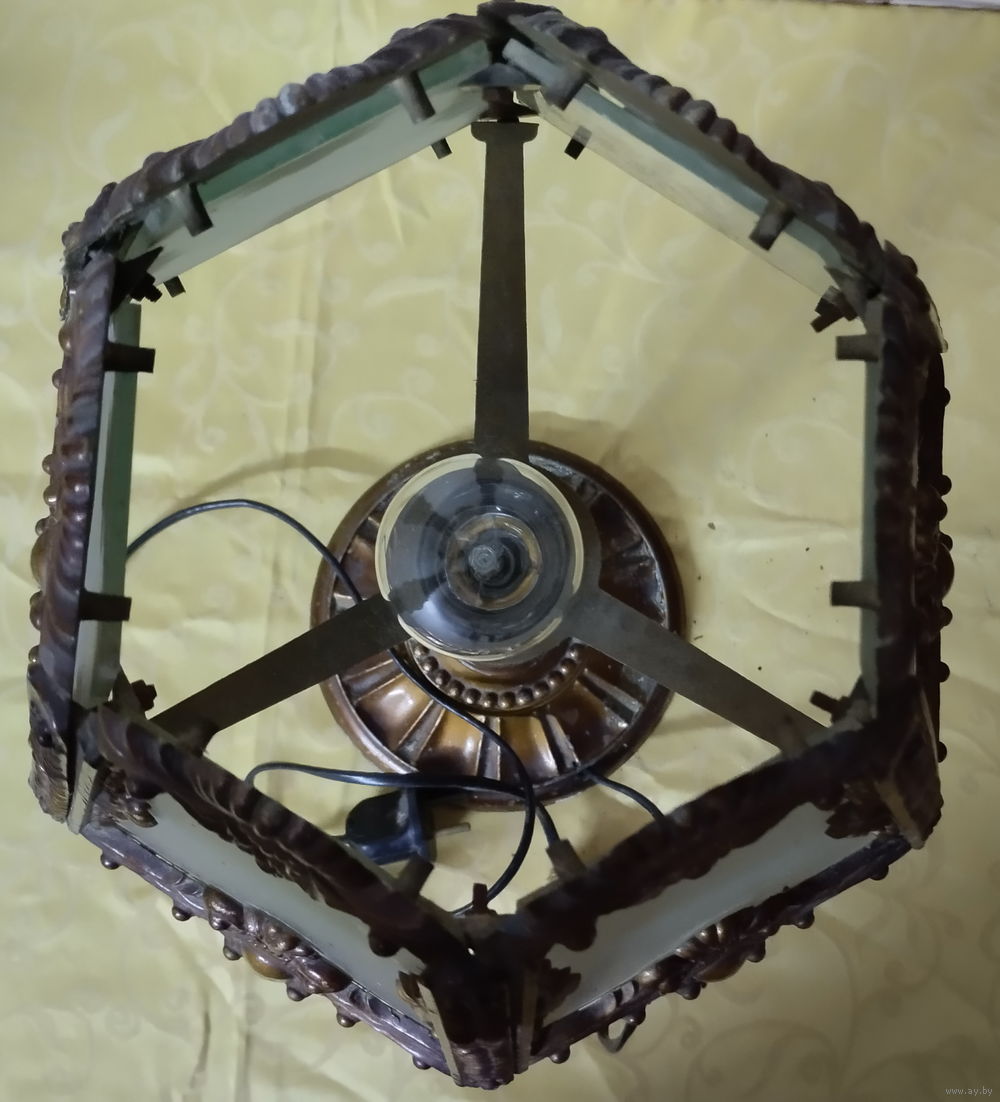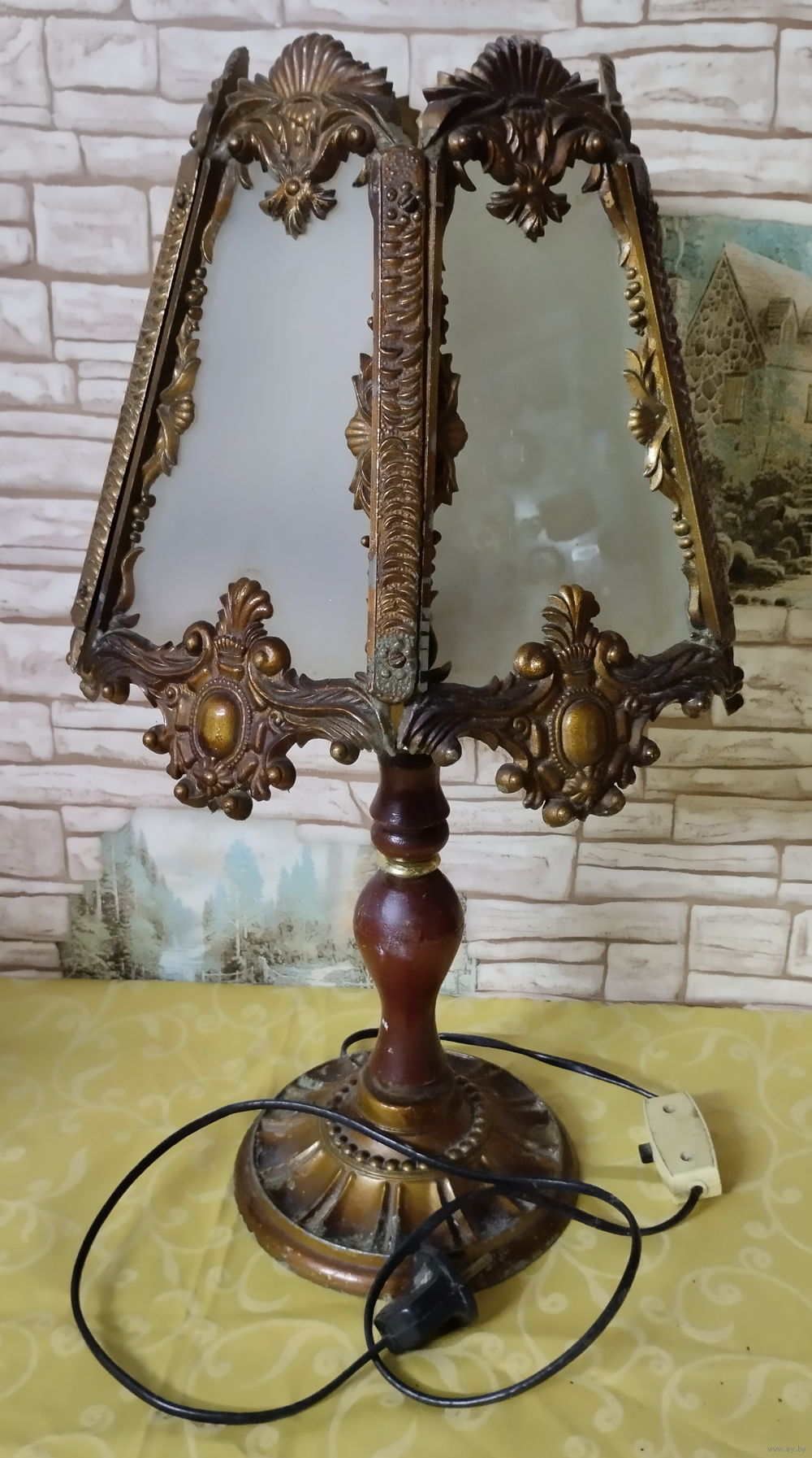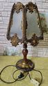 Лампа настольная в старинном стиле. Корпус из плотного пластика, тонированного под бронзу - на вид не отличить от металла. Матовое стекло. Рабочая.