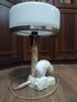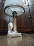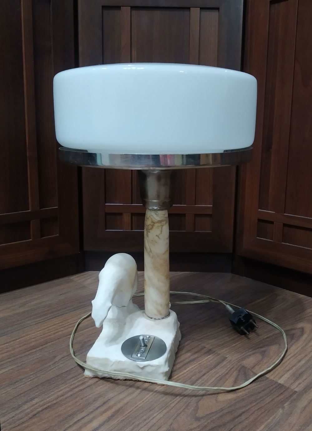 Знаменитая статусная кабинетная настольная лампа, выполненная в стиле Сталинский ампир из натурального бело-серого мрамора с уникальным природным рисунком. Некоторые называют ее "Таблетка", «Колонна», «Грибок», да хоть «Шайба».