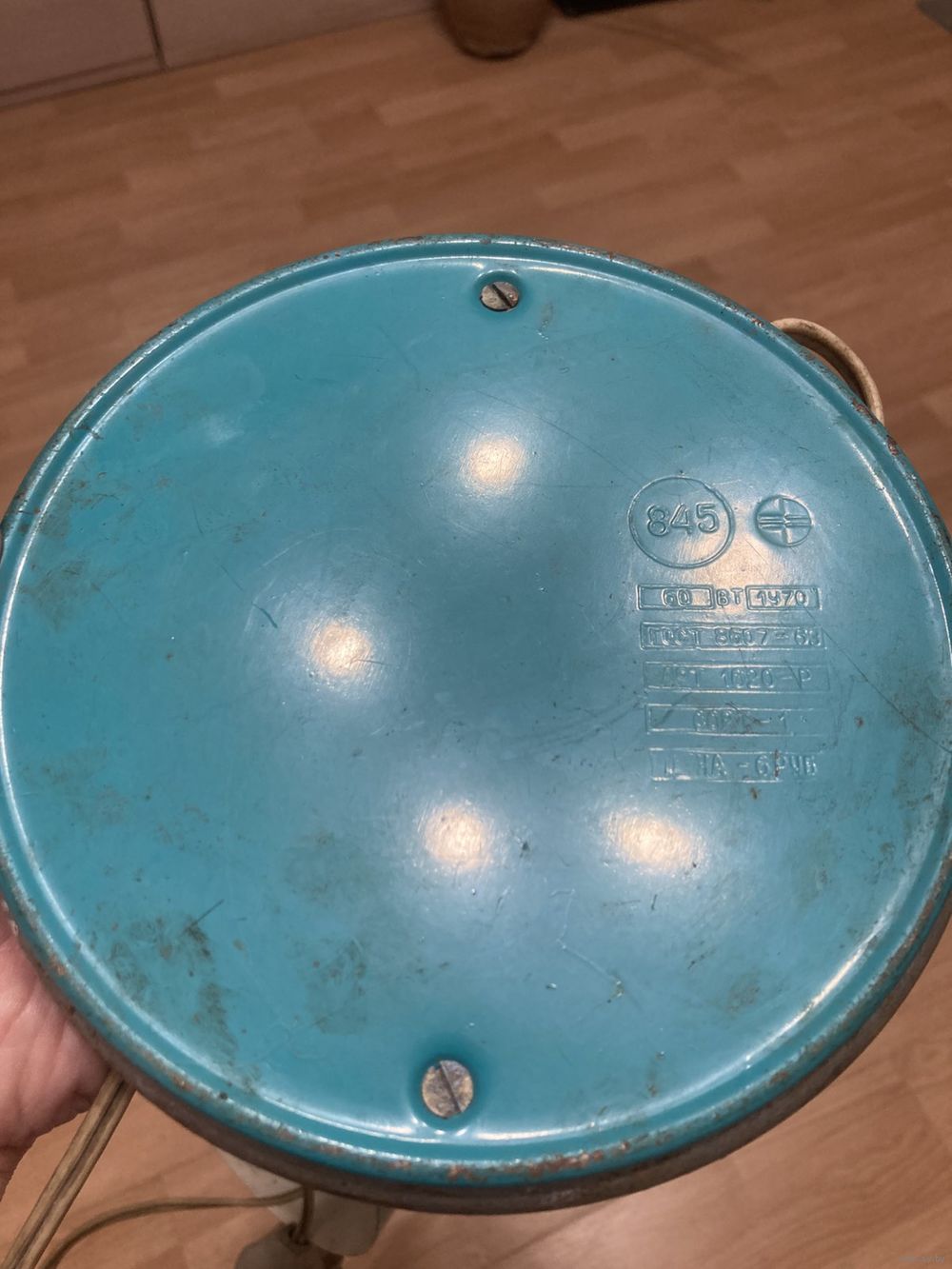Лампа настольная, винтаж, СССР. Изготовлена в 1972г. (клеймо на нижней стороне основания). Рабочая, вилка и проводка в нормальном рабочем состоянии. Неодходимо зачистить верх основания и покрасить. Стильный дизайн в стиле советского арт-деко. Плафон в стационарном положении (родное положение). Для ценителей и любителей винтажных твещей. Отправлю любой почтой.