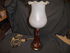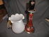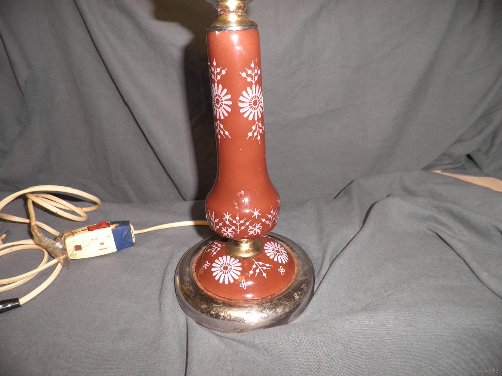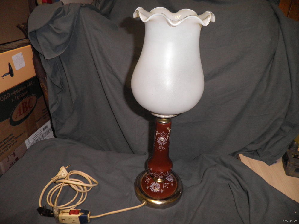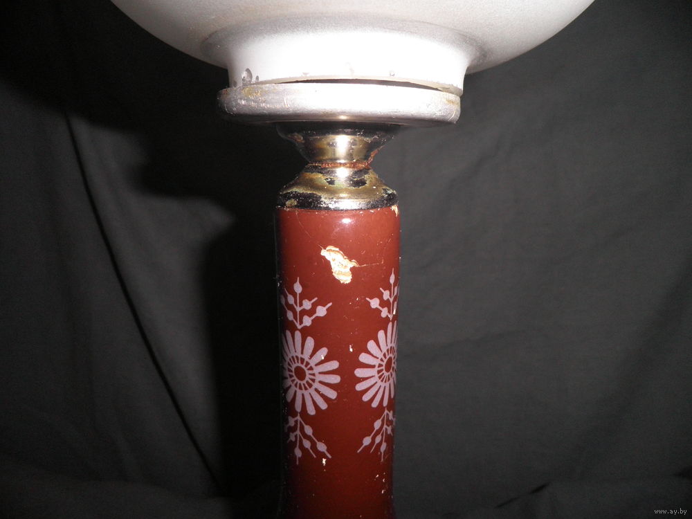 Высота 43 см.,плафон-стекло,стойка-фаянс,роспись.