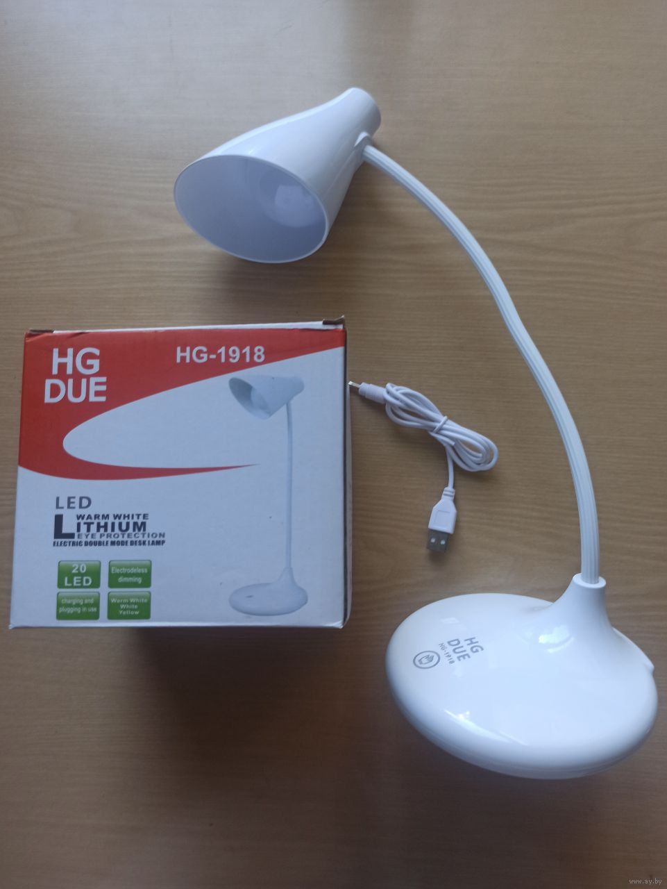 Лампа светодиодная гибкая настольная HG-1918 , сенсорное управление , (цвет света голубой, белый , желтый )