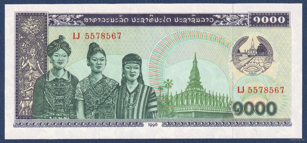 Лаос, 1000 кип 1996 г, P-32d (LJ, пагода Пха Тхат Луанг во Вьентьяне), UNC