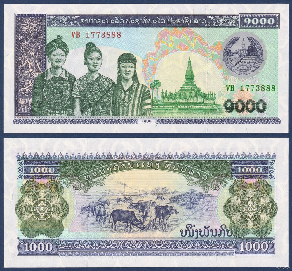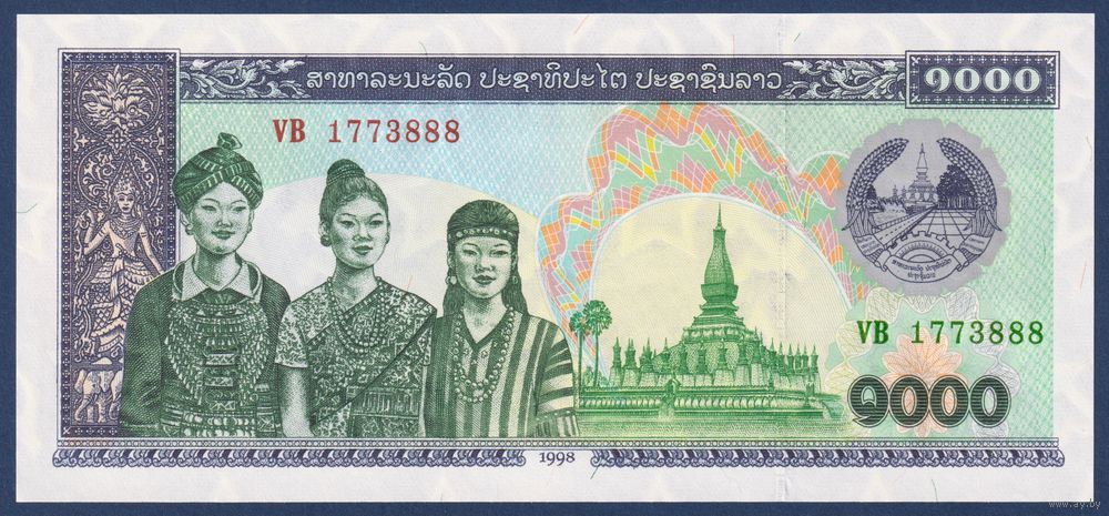 Лаос, 1000 кип 1998 г., P-32Aa (VB, пагода Пха Тхат Луанг во Вьентьяне), UNC