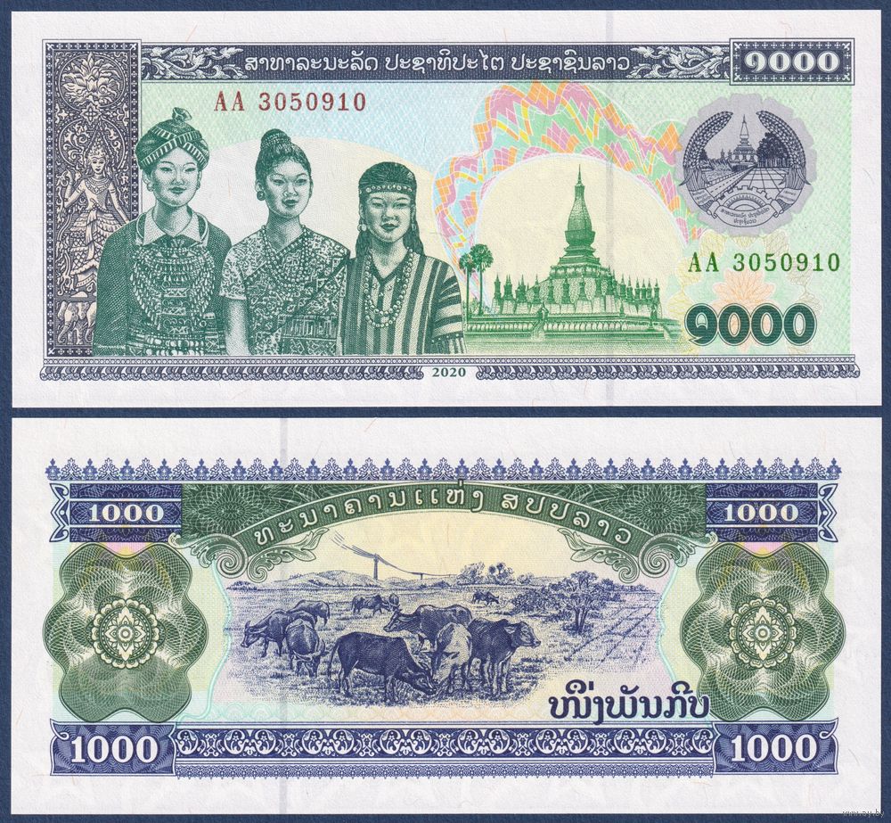 Лаос, 1000 кип 2020 г, P-32Aa (AA, пагода Пха Тхат Луанг во Вьентьяне), UNC