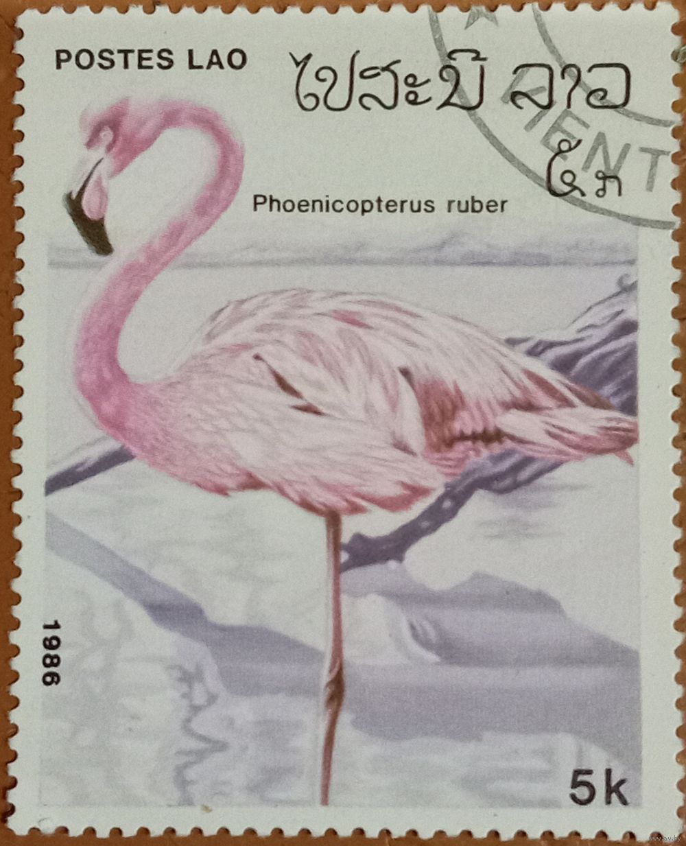Лаос 1986. Фауна. Птицы. Phoenicopterus Ruber
