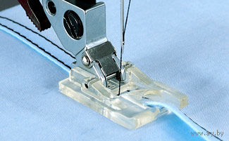 Плоские запошивочные швы очень прочны и известны как "джинсовые швы". Эти швы можно выполнять контрастными нитками для получения декоративного эффекта. Лапка-запошиватель шириной 4,5 мм предназначена для шитья блузок, рубашек и других изделий из тонких тканей.