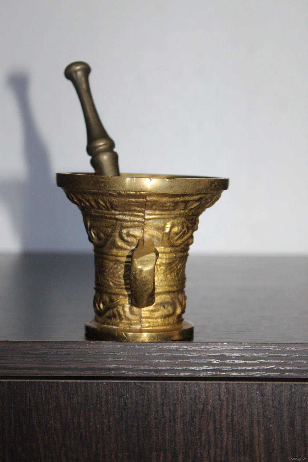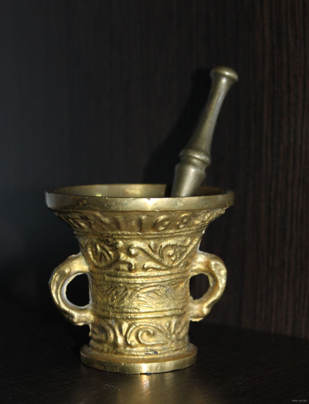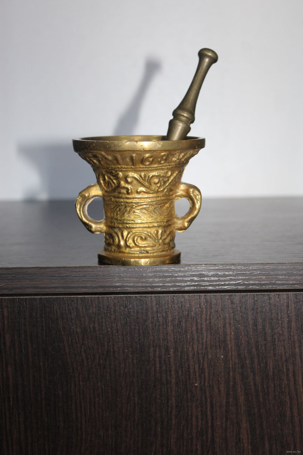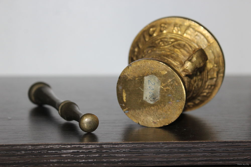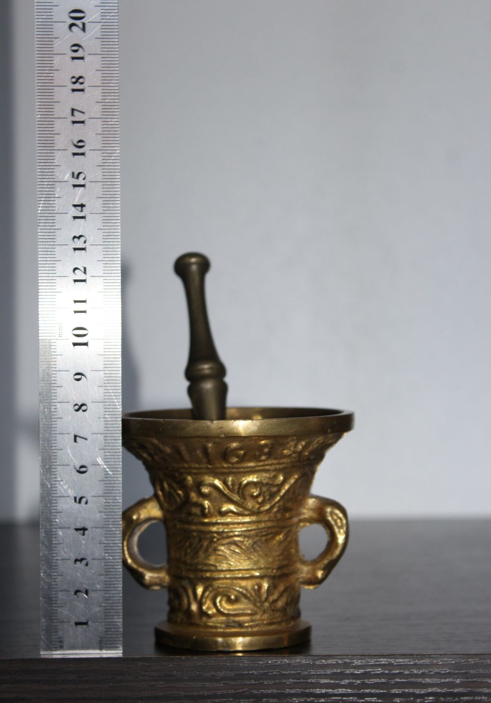 | Присутствуют микро скольчики по основанию, царапинки, высота 7,6 см., внутренний диаметр 7,4 см., длина пестика 13,9 см.. | |