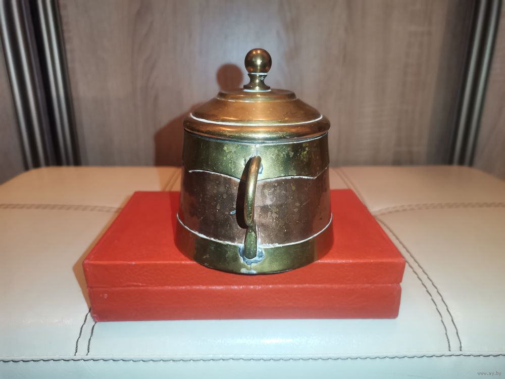 Латунная ёмкость с медной вставкой, высота 11 см., клеймо.