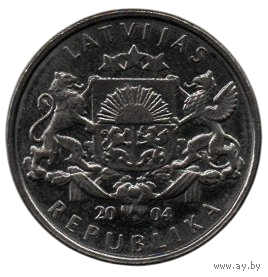 Латвийская Республика. Латвия /ІІ Республика/. 1 лат 2004. Белый гриб. Нечастая.