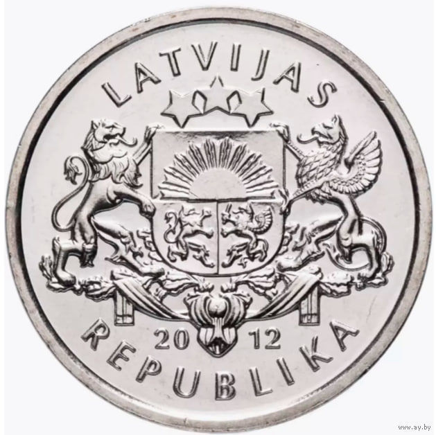 Латвия 1 лат 2012 года, UNC. Ёжик. Герб Латвии. Сторгуй за свою цену, предложи обмен! S/Y30-4