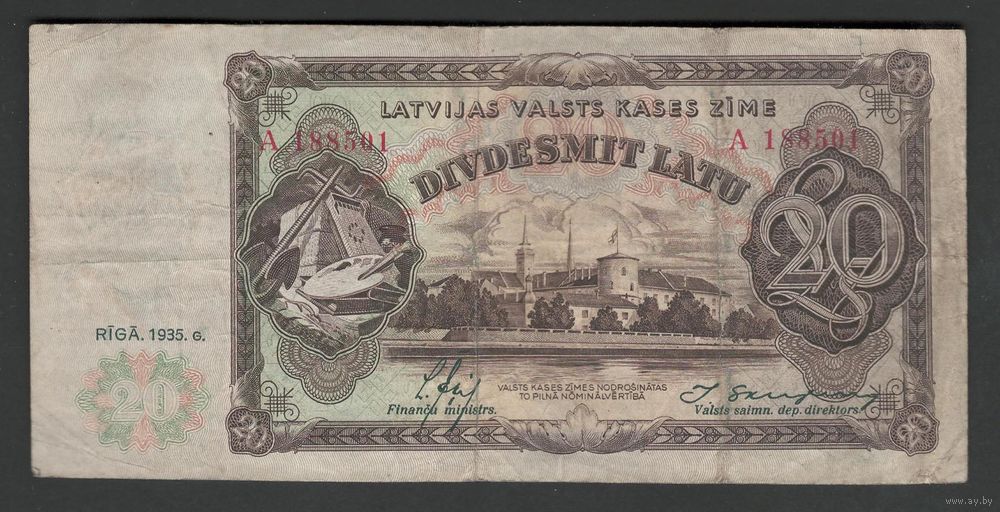 Латвия 20 лат 1935 года. Тип Р-30a. Состояние VF-