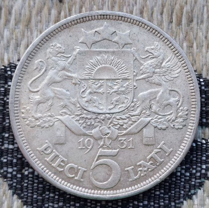 Латвия 5 лат 1931 года, UNC. Герб Латвии. Серебро. Предложи свою цену или обмен! S120