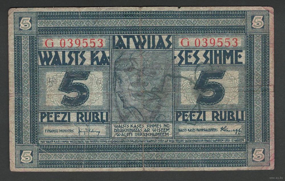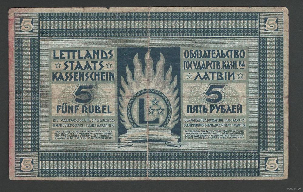 Латвия 5 рублей 1919 года. Серия G. Тип Р-3fH. Состояние F/VF