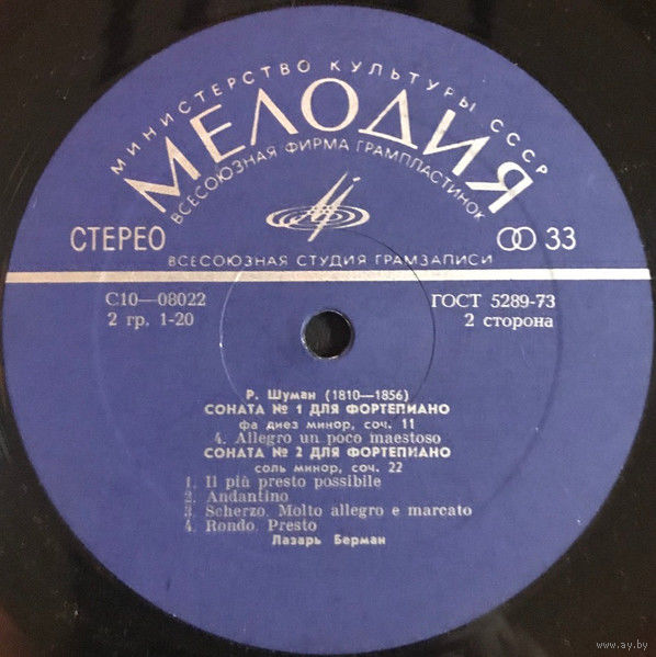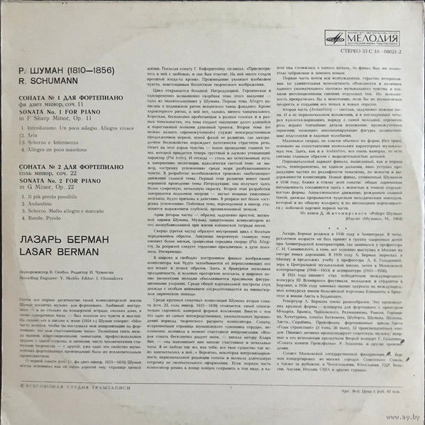 Лазарь Берман – /Р. Шуман/ -Две Сонаты Для Фортепиано - 1974,Vinyl,LP,made in USSR.